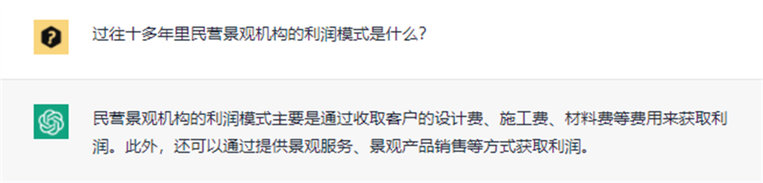 问到民营景观和地产行业的发展时,ChatGPT的表述如下。