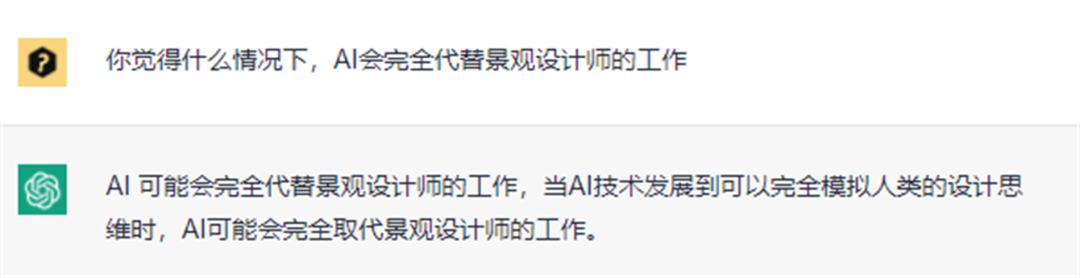 问到AI在什么情况下可以完全代替景观设计师的工作,ChatGPT给出的回答是值得思考的。