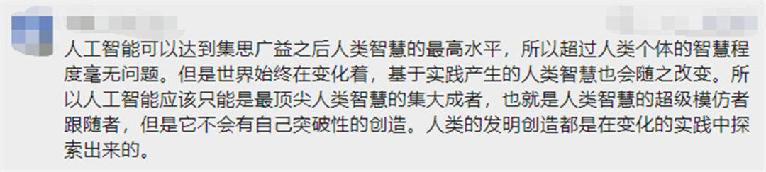 有些人觉得这个软件的出现并不能代表什么,目前人工智能的发展离取代人类的一些工作还有一定距离,我们也是永远无法替代,但有些人也以此为警示,认为我们应该一直保持进步的脚步,与时代共进。