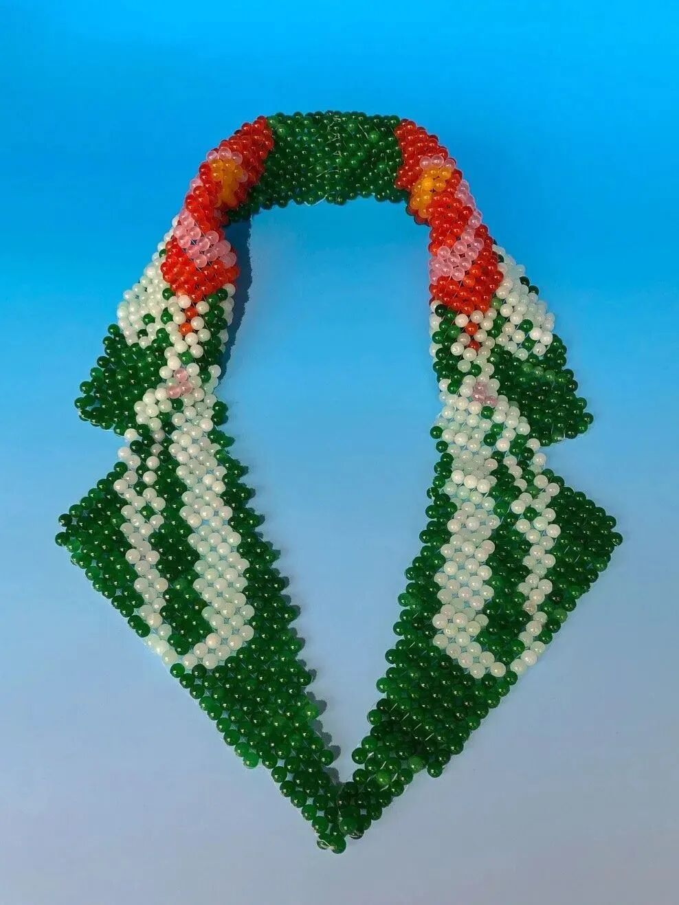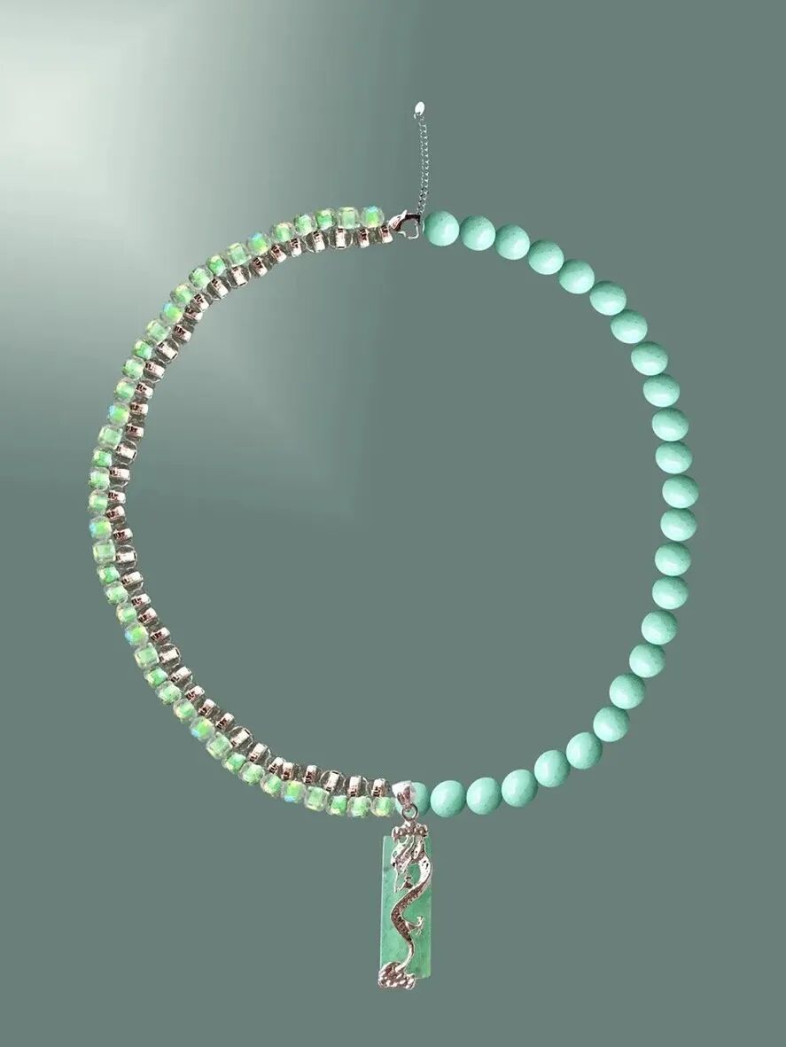 而YUEQI QI手中的玉石又是另一番复古摩登面貌,彩色串珠精致还原充满年代感的老物件图案,龙图腾和金属字串联的玉珠浪漫且迷人。
