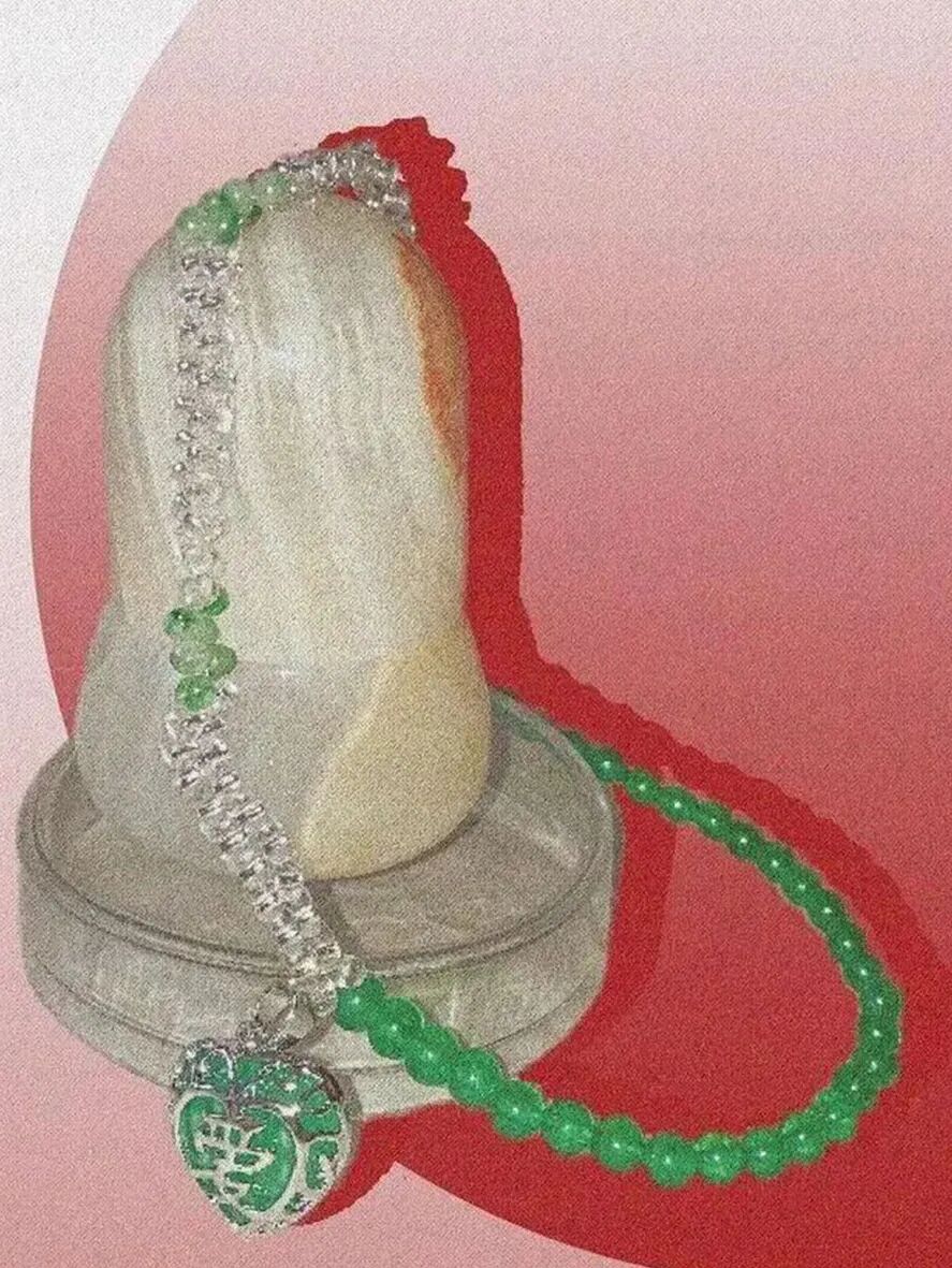 将金属汉字“爱”“福”等吉祥字与传统玉石结合的Momentel,张扬与复古并存;TysGrocery 里天然玉石与糖果色树脂搭配出趣味、斑斓的想象;在试验性首饰品牌ATELIERSÓ巴别塔系列中,葡萄石缠绕于链条间,追寻柔与刚的对立与平衡。少女,可爱、趣味、先锋实验……玉饰形式边界被不断拓宽。