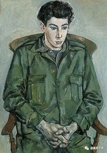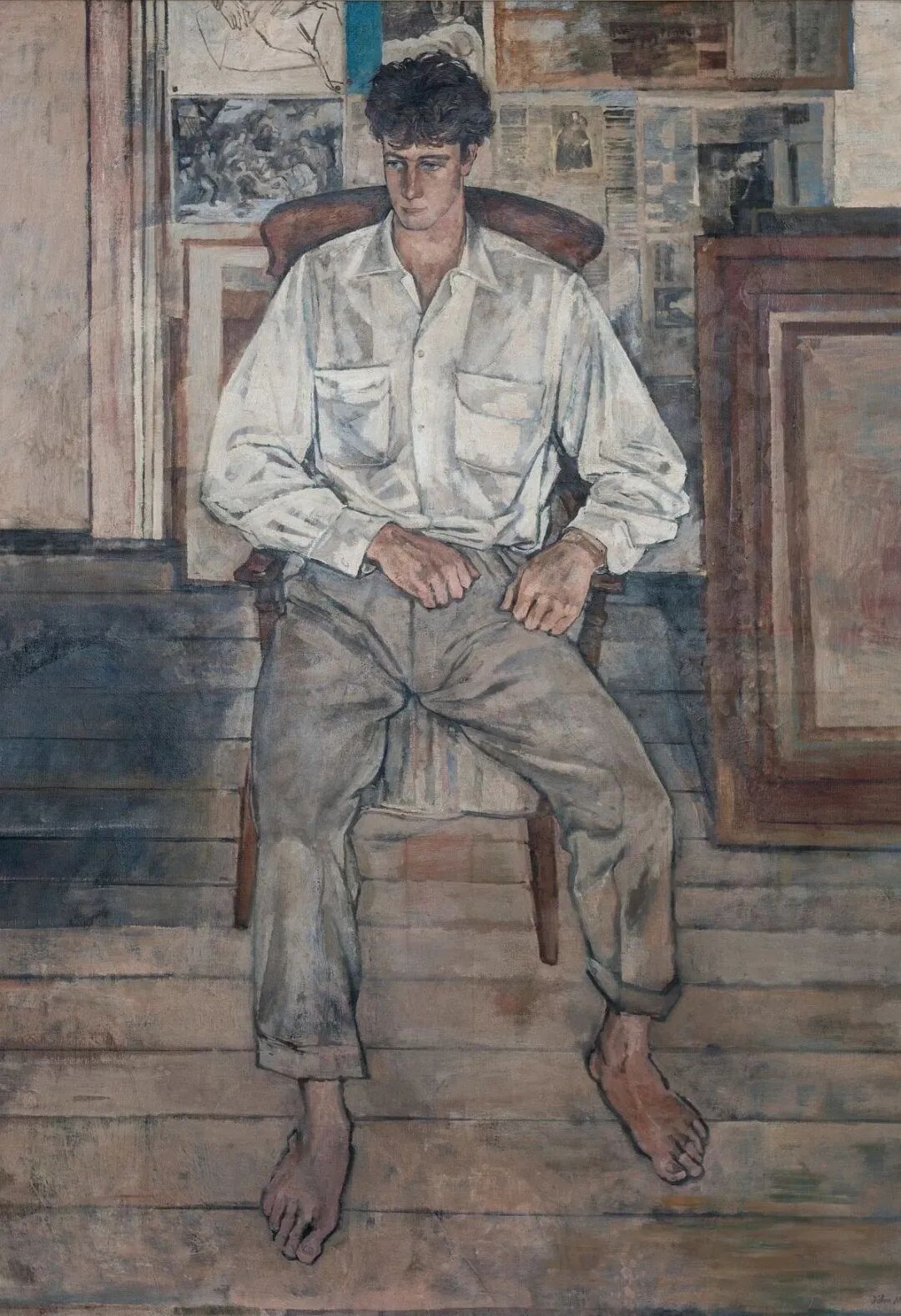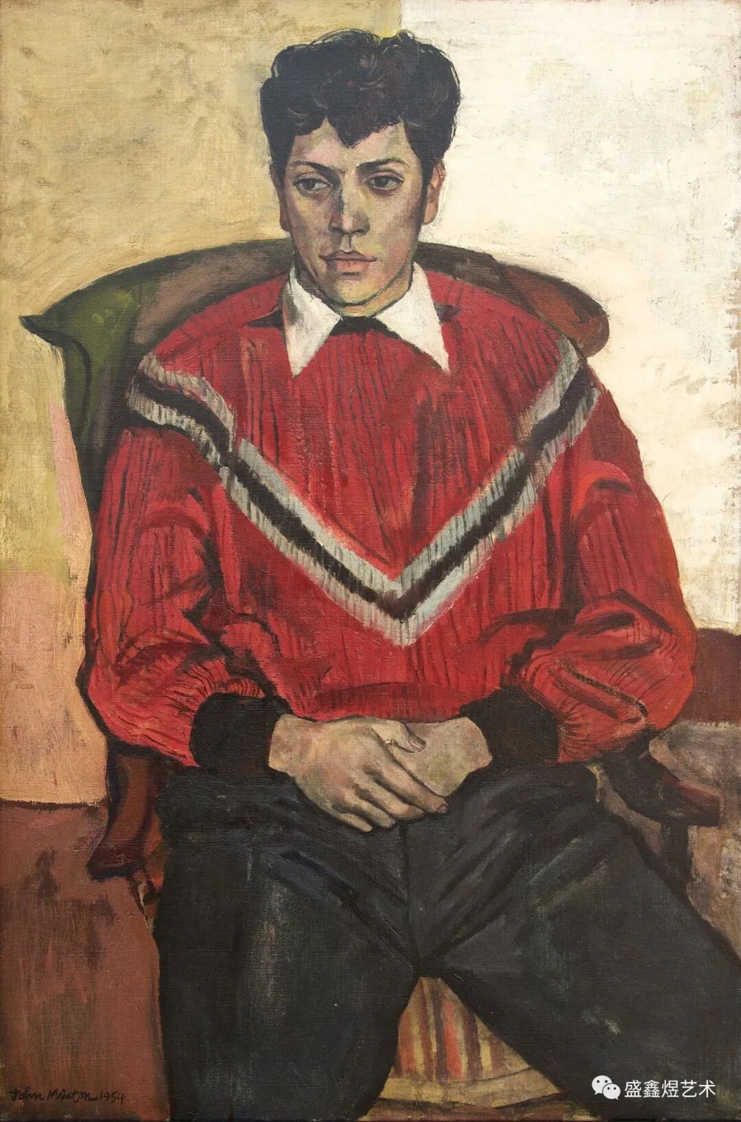 在 20 世纪 50 年代,他的作品变得越来越自然主义。他的许多年轻人肖像都具有深刻的辛酸和心理强度。他的许多学生都在为这些肖像画而坐,包括他在坎伯韦尔遇到的鲍比·亨特,以及他在圣马丁艺术学院素描俱乐部遇到的大卫·廷德尔。他描绘的廷德尔坐在椅子上的肖像和相关图画(均现收藏于 Pallant House 画廊)以程式化的方式展示了这位年轻艺术家对毕加索蓝色时期的感激之情。