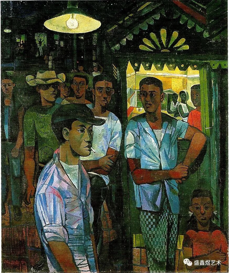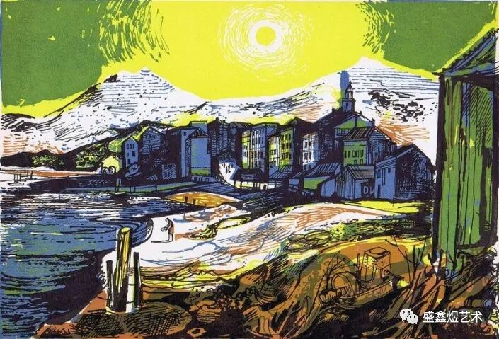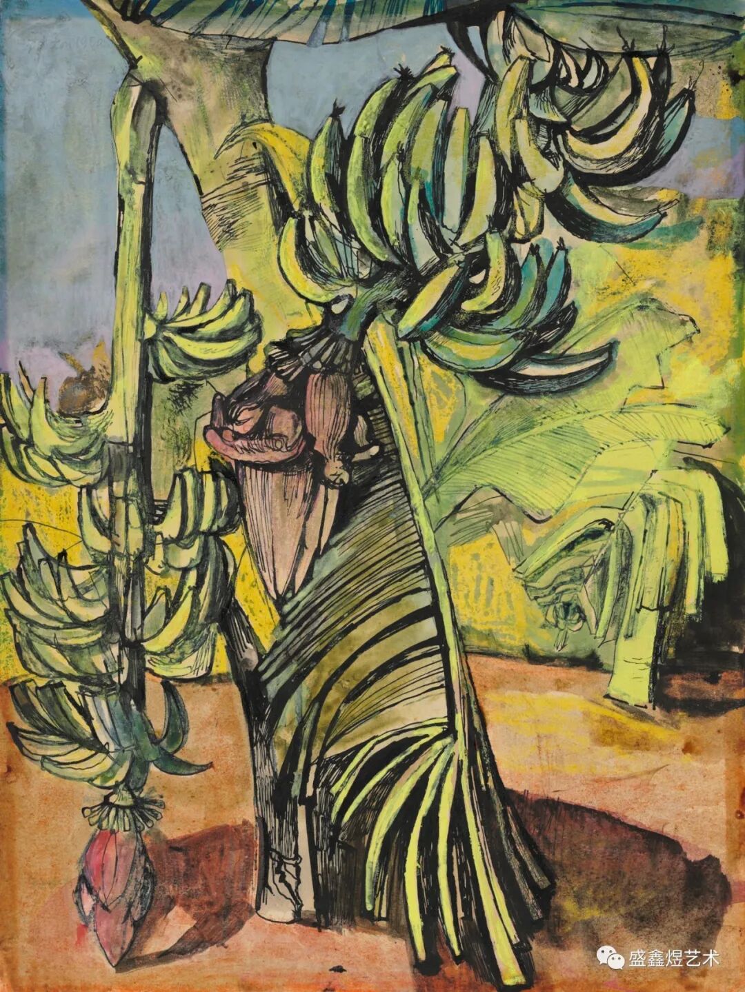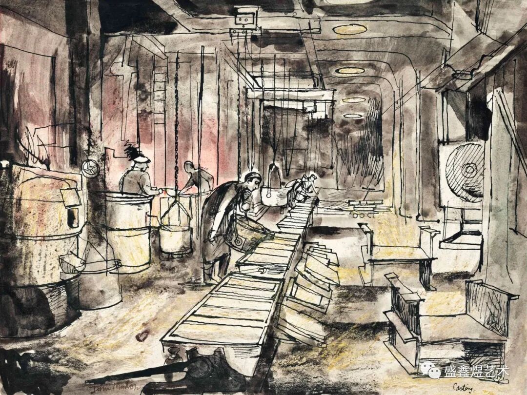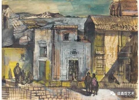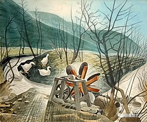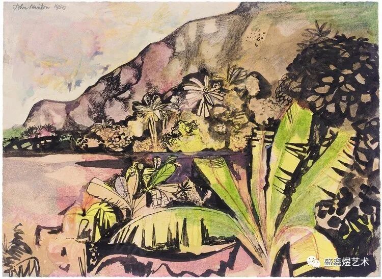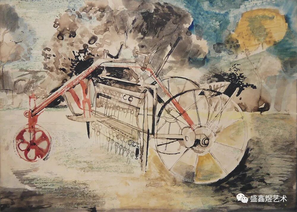 战争期间,他受欧洲“新浪漫主义”作品中柔美人物的影响,创作了受炸弹破坏环境中的年轻人的水墨画。后来,受 19 世纪富有远见的艺术家威廉·布莱克和塞缪尔·帕尔默作品中对收割者的田园描写的启发,他创作了关于在收割的月光下睡在干草堆中的年轻人的挽歌描写。