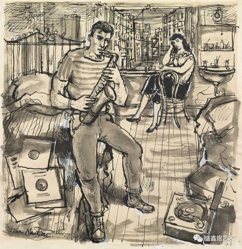 明顿的绘画和素描浓缩了 1940 年代和 50 年代英国艺术的浪漫气息——伦敦被炸毁的码头的图像、沉思的年轻人的肖像,以及引人注目的书籍插图——每一个都是艺术家本人深刻的个人表达在一些作品中,明顿唤起了一种诗意的忧郁气氛,但在其他作品中,他传达了完全相反的气氛:一种旺盛的生活乐趣。在这方面,他的作品反映了他自己复杂的个性。