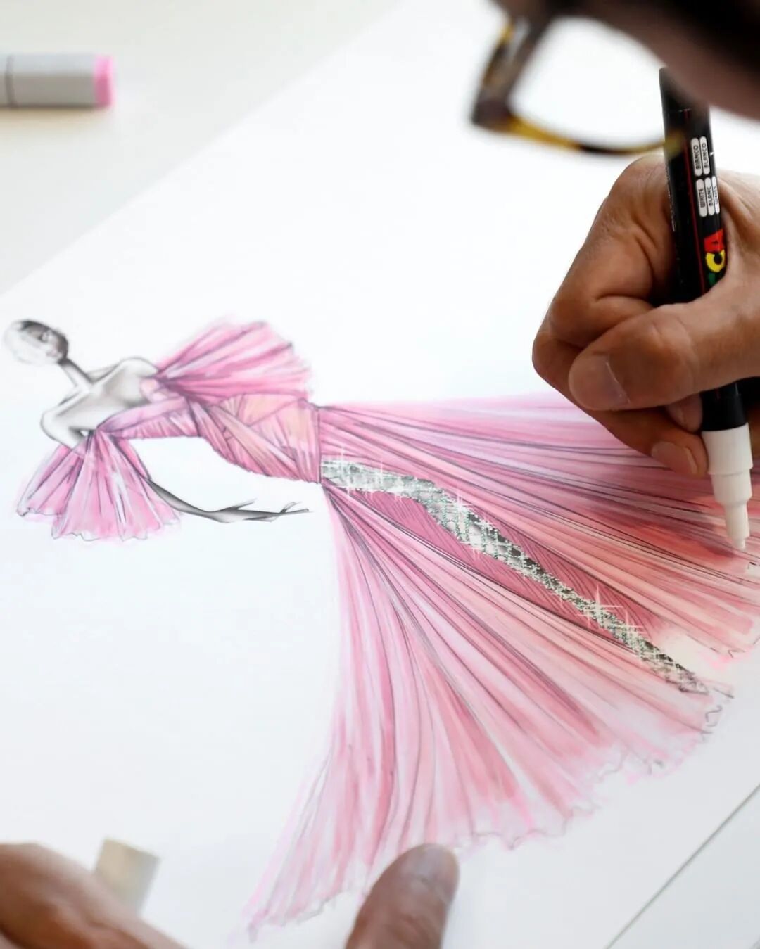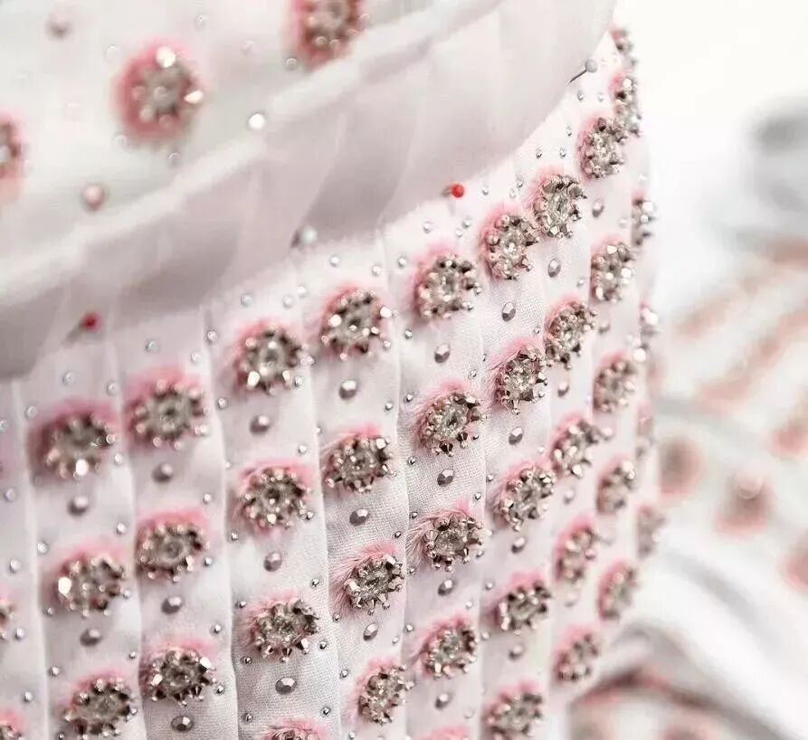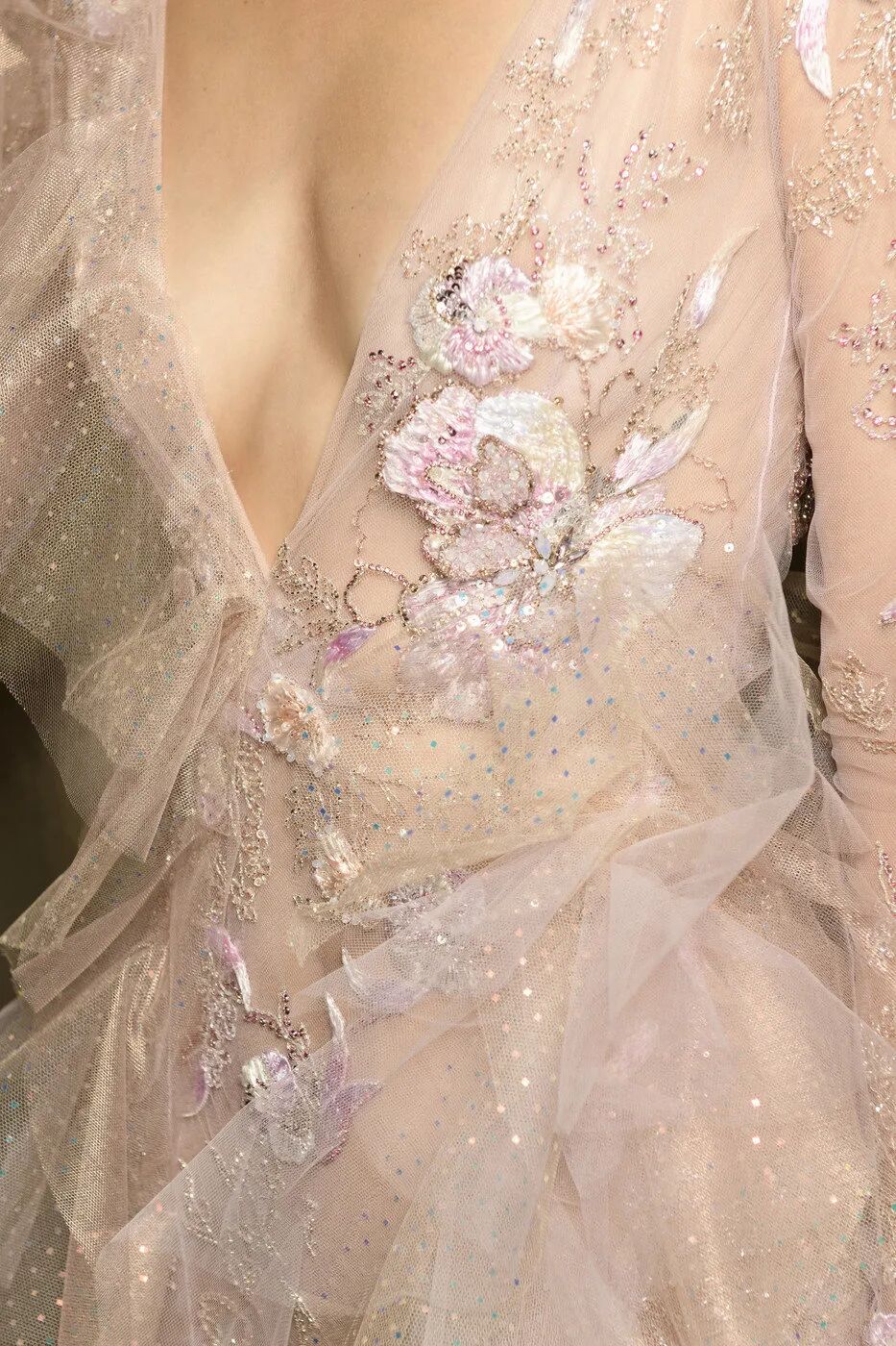 手工绘制花卉礼服裙、带有亮片装饰的裤装、仿佛星光洒落在裙摆上的坠地长裙,每一件都代表着对高级定制服装的追求,以及对于手工艺最高品质的坚持。