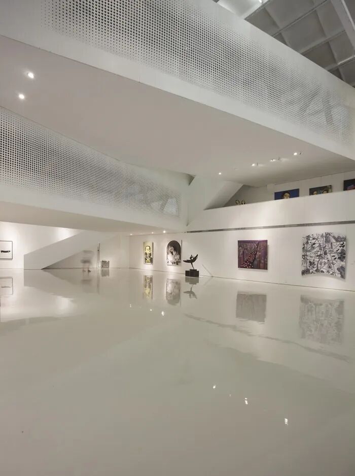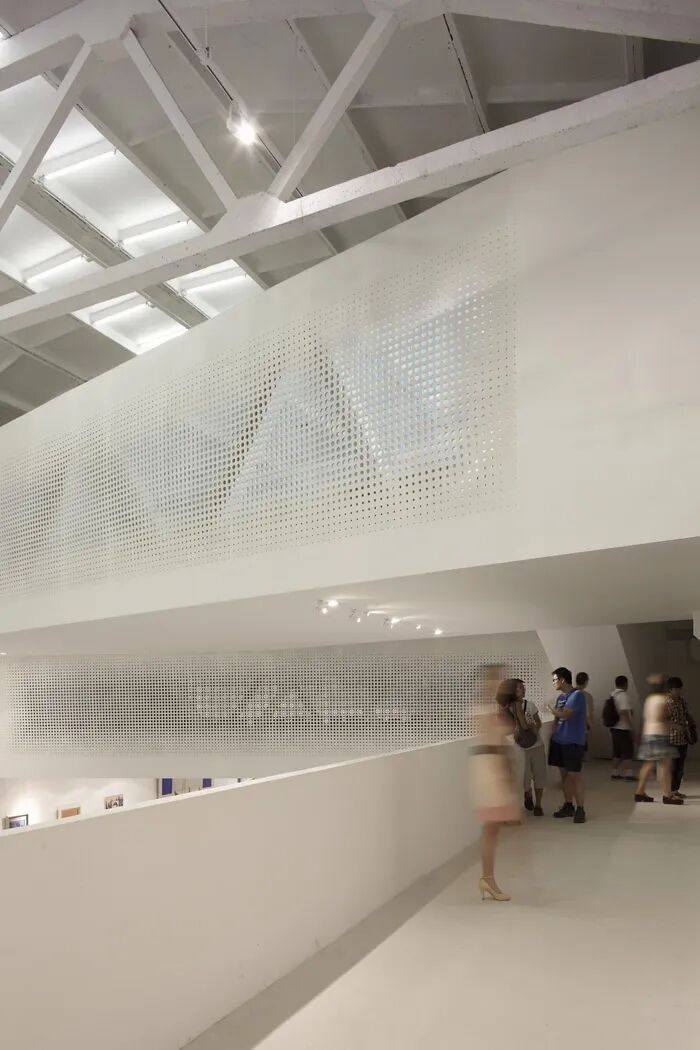 它们互为反正,形成了相互生长在一起但又清晰界定空间体系。展览空间在保留了场地和视野的最大化的同时,产生了更具戏剧效果的丰富性,观众可以穿行于商业体之间,到达不同空间水平层面,在这个基座只有900㎡的旧厂房里,形成了可游走的山水空间意境。商业空间被完整的融入了展览空间体之中,透过渐透的筒状空间,感受着艺术的氛围。
