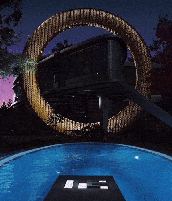 20 世纪 50 年代末,由法国奢侈品牌创始人 Pierre Balmain 构思的 Villa Balmain(巴尔曼别墅)于意大利艾尔巴岛上建起。而在今年的迈阿密巴塞尔艺术展上,这栋已然成为时尚界传奇符号的建筑摇身变为了元宇宙豪宅,在 11 月 30 日于迈阿密 Superblue 展馆宣告开幕。这个数字作品由古巴当代艺术家 Alexandre Arrecha 打造,以原建筑内外部设计为灵感。在依靠 LITO 的高分辨扫描技术将别墅及其周围的环境数字化后,Arrecha 将建筑影像与金色的数字蜂窝构架在一起,让繁忙的蜜蜂飞舞其间,共同构成一个大型的沉浸式虚拟环境。