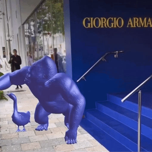 迈阿密艺术周期间,意大利奢侈品牌 Armani 举办了沉浸式的“Giorgio Armani Love Art Basel Miami(乔治·阿玛尼热爱迈阿密巴塞尔艺术展)”活动。这个以“爱”为核心的展览,聚焦于意大利艺术家 Marcantonio 创作的四个蓝色大型动物雕塑,将时尚、艺术和科技融为一体。当参观者通过扫描雕塑处的二维码解锁 AR(增强现实)体验,这些动物雕塑便会生动地“活”过来,带领参观者踏上一条通往 Armani 商店的沉浸式旅程。作为该项目的一部分,包括豪华针织品、运动衫、短裤和大廓型衬衫在内的一系列无性别服饰也都将在这个位于迈阿密设计区的商店以及品牌官网提供。