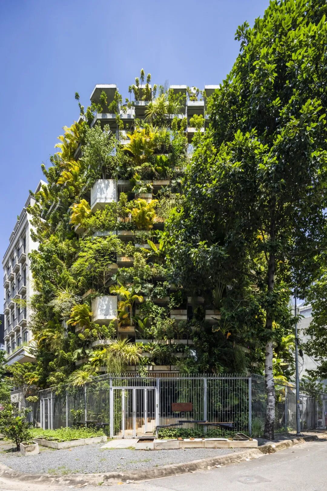 “城市农业办公楼”,就是为了改变这种状况而建设的。该项目的目的是将绿色空间还给城市,促进安全食品生产。该办公室项目位于胡志明市的一个新开发地区,展示了垂直城市农业的可能性。它的立面由悬挂的种植箱组成,种植了各种当地植物,使他们能够获得足够的阳光。这种绿色的方法将以最低的能源消耗提供安全的食品和舒适的环境,为城市的可持续发展做出贡献。