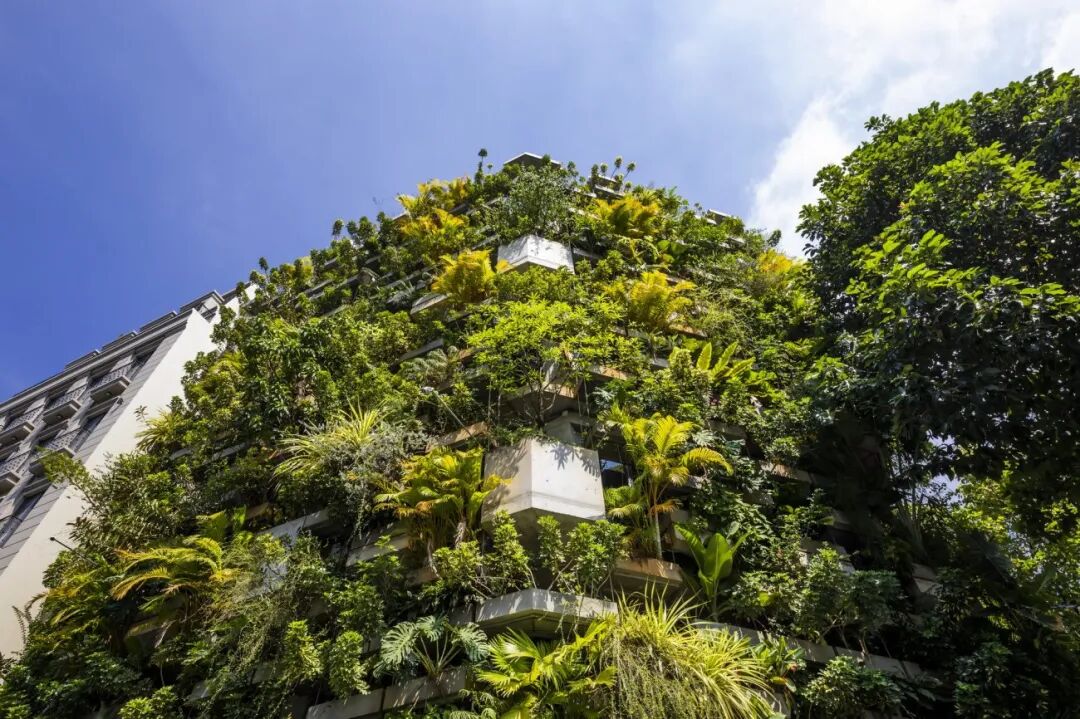 “垂直农场”是为植被设计的,施工方法简单——它由混凝土结构、钢支撑和模块化的种植箱悬挂在建筑上。种植箱是可更换的,因此可以根据植物的高度和生长条件灵活布置,为了提供充足的阳光。加上屋顶花园和地面的绿化,该系统为建筑面积提供了高达190%的绿化比例,相当于1.1吨的收成。种植箱内选择了当地的各种可食用植物,如蔬菜、草本植物和果树,有助于该地区的生物多样性。同时采用了有机处理方法进行维护。