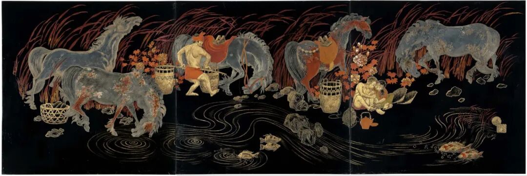 其作品在国际艺术市场较为罕见。本次上拍的这件三扇漆画,散发着一种安静和柔和的氛围。这幅作品是在艺术家去世前三年完成的,它见证了艺术家登峰造极的艺术技巧。