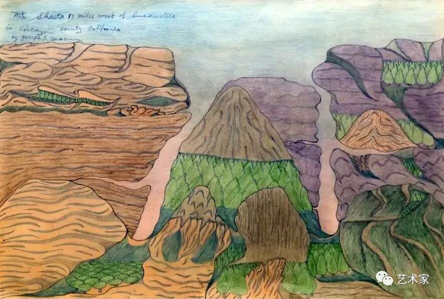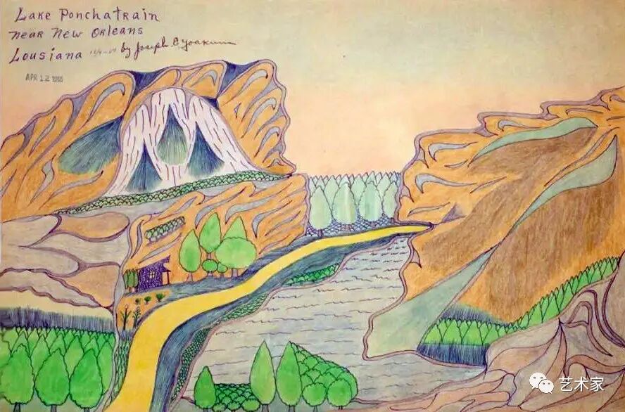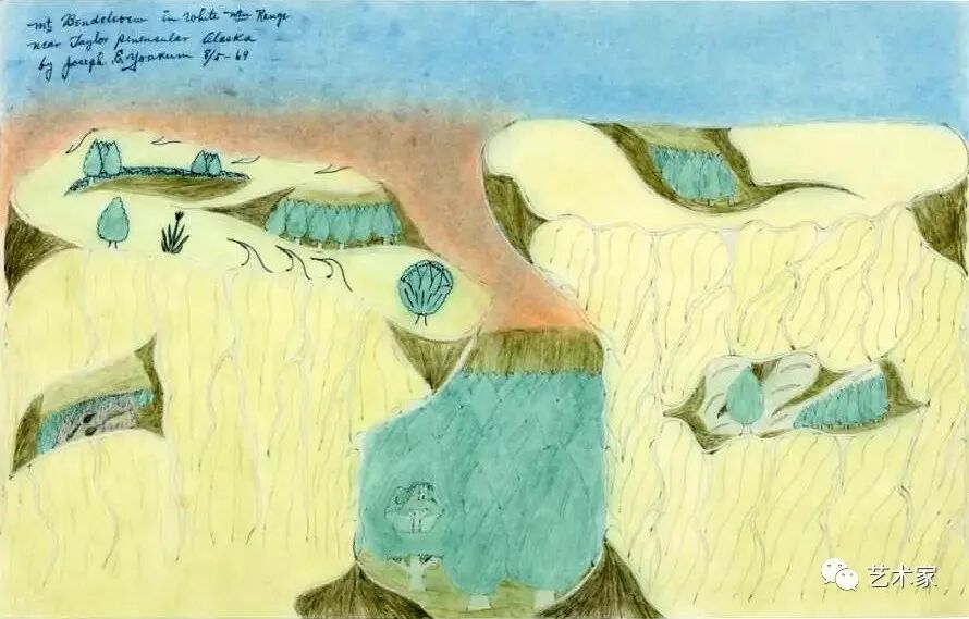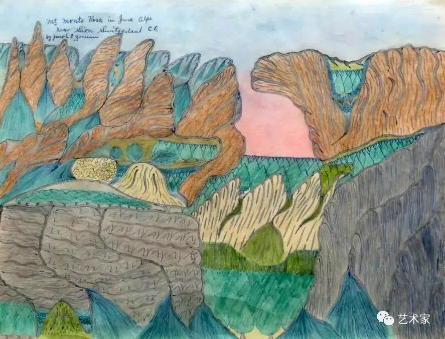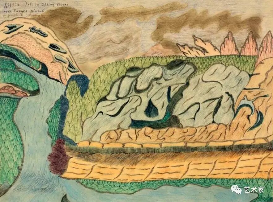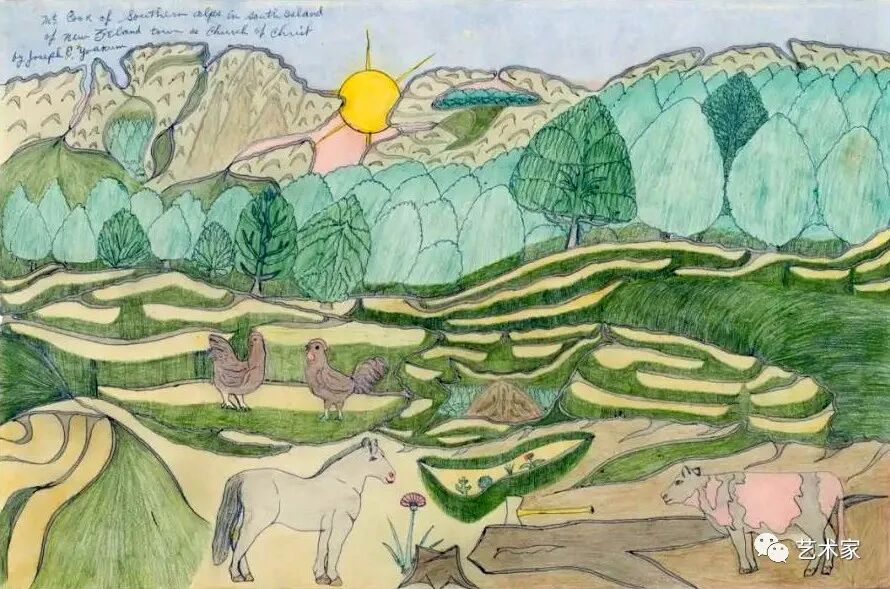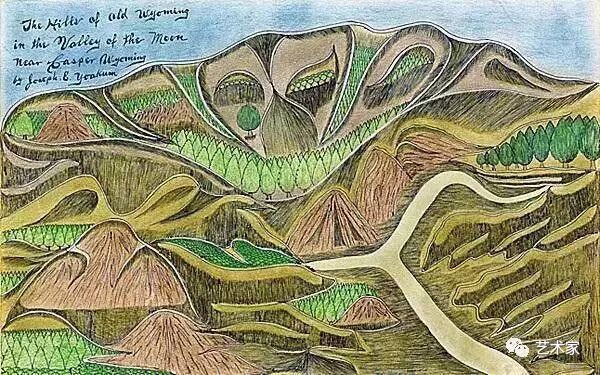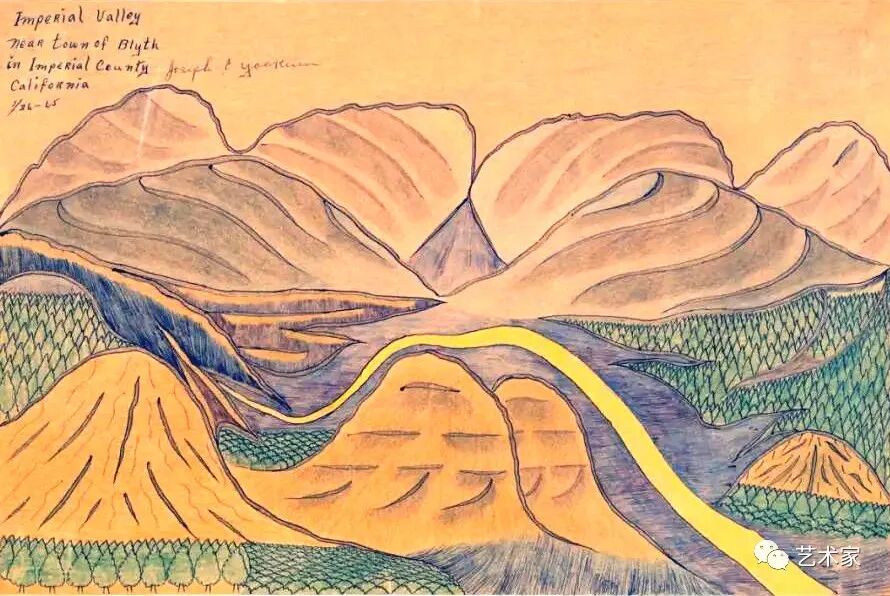 约库姆没有正式学习过绘画,71岁时拿起画笔开始描绘所见的风景,先以钢笔与铅笔的流畅线条从不修改地勾勒出山川、土地与河流的界限,再以水彩与彩色铅笔填入色彩丰富、明亮却不过于艳丽的色块。