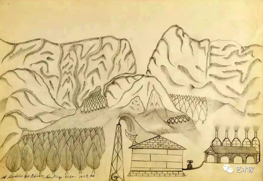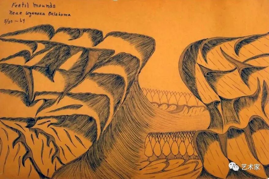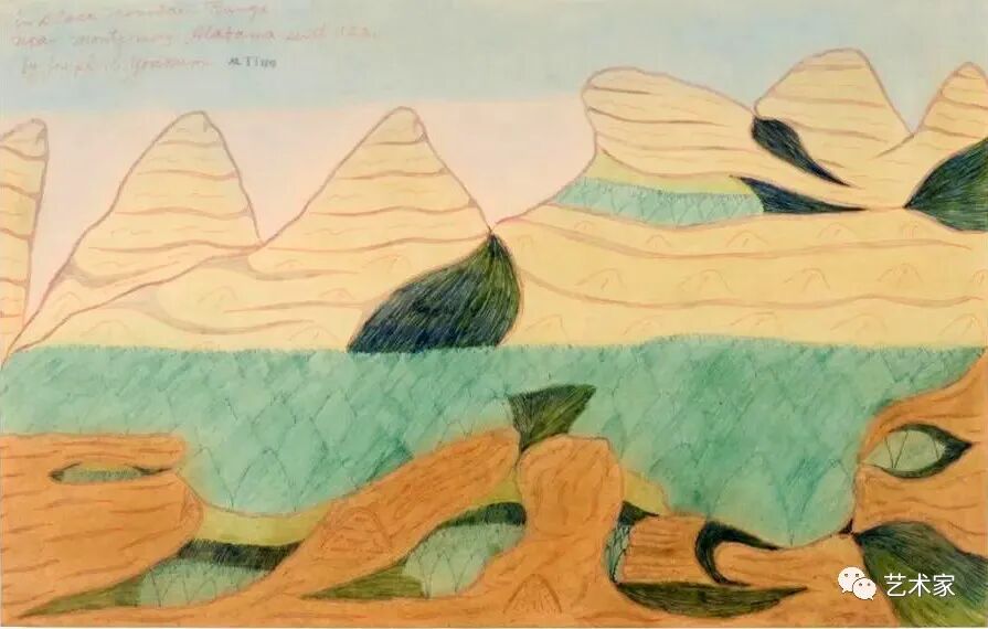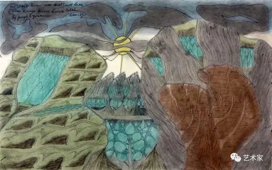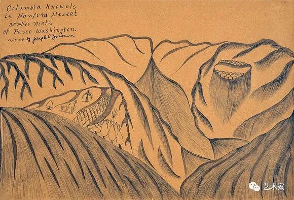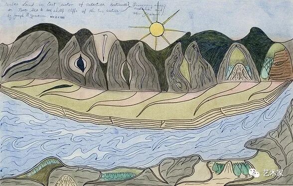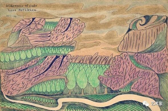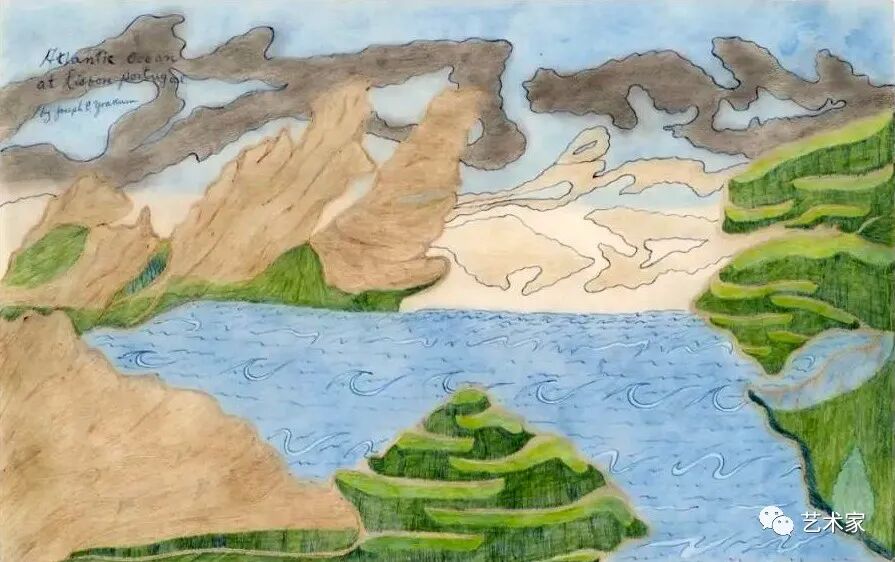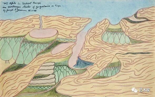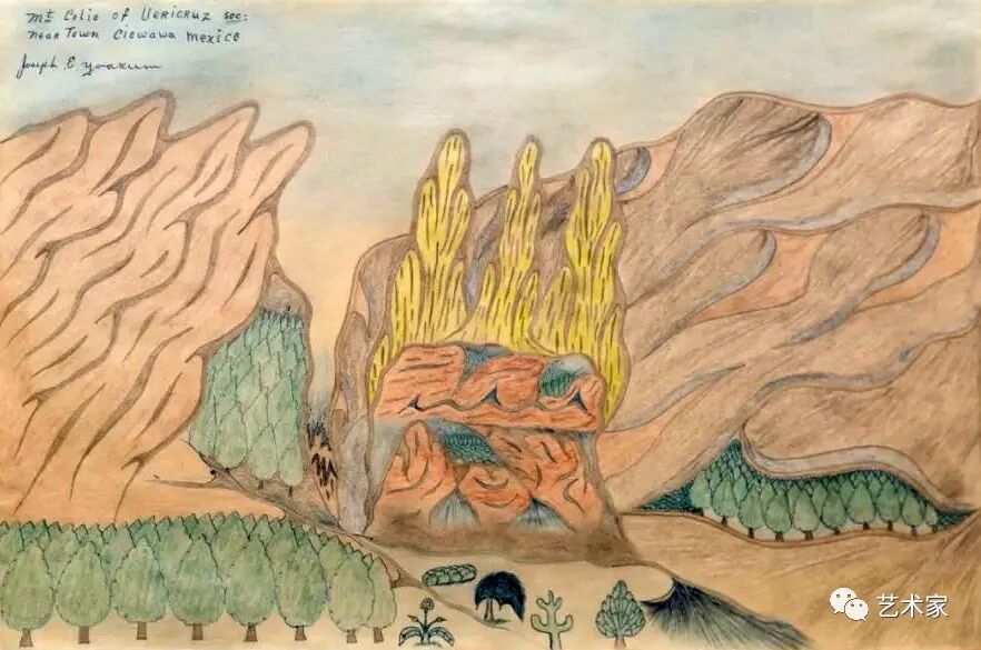 约库姆没有正式学习过绘画,71岁时拿起画笔开始描绘所见的风景,先以钢笔与铅笔的流畅线条从不修改地勾勒出山川、土地与河流的界限,再以水彩与彩色铅笔填入色彩丰富、明亮却不过于艳丽的色块。