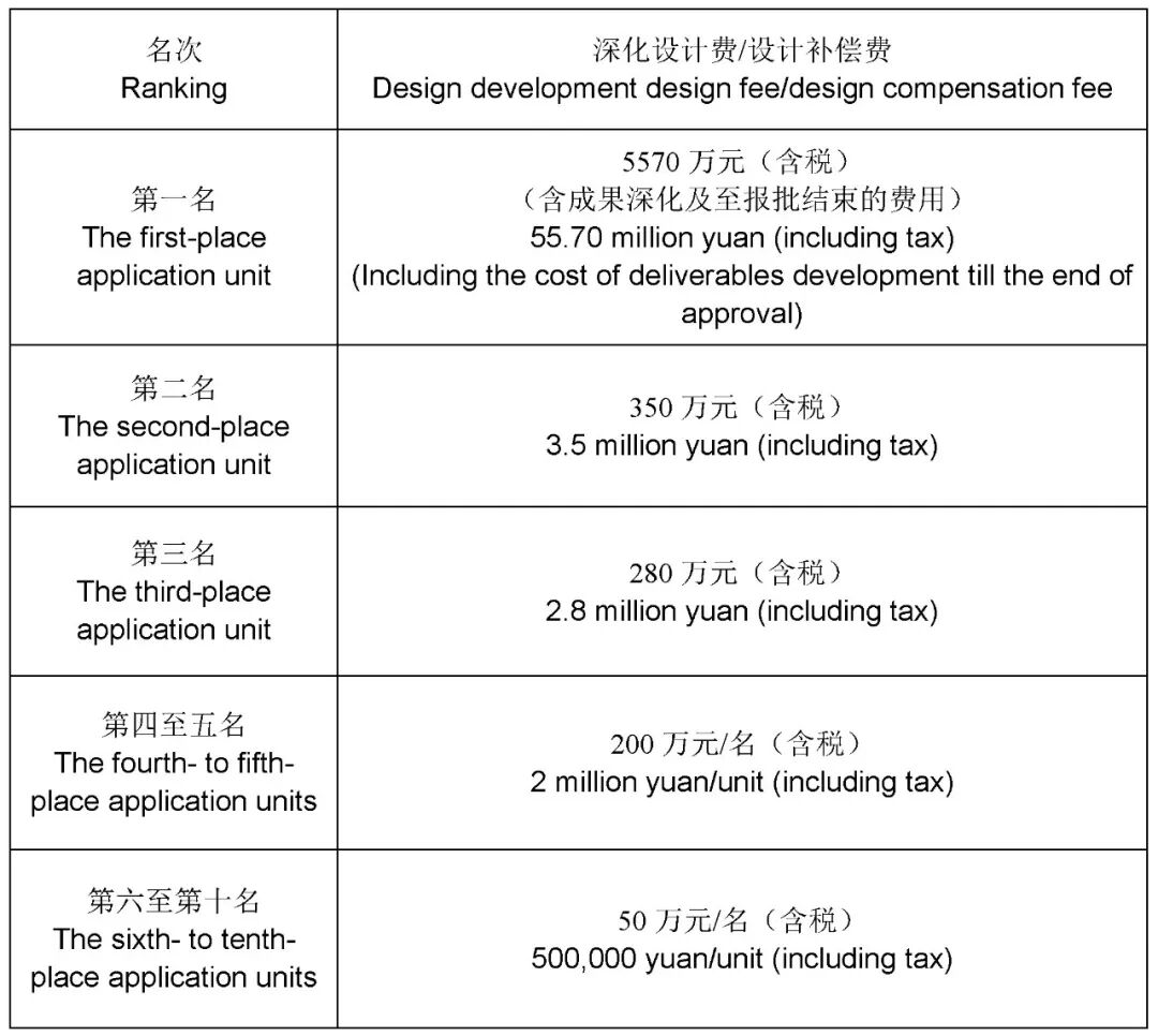After full discussion between the Host and the scheme review experts, the ranking of the top three winners will be determined. The first-ranking application unit will be awarded with the development design consulting contract of the Project, and the other application units will be paid the corresponding design compensation.