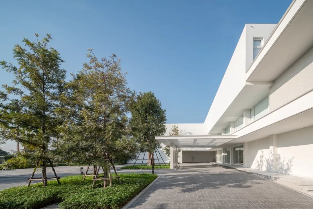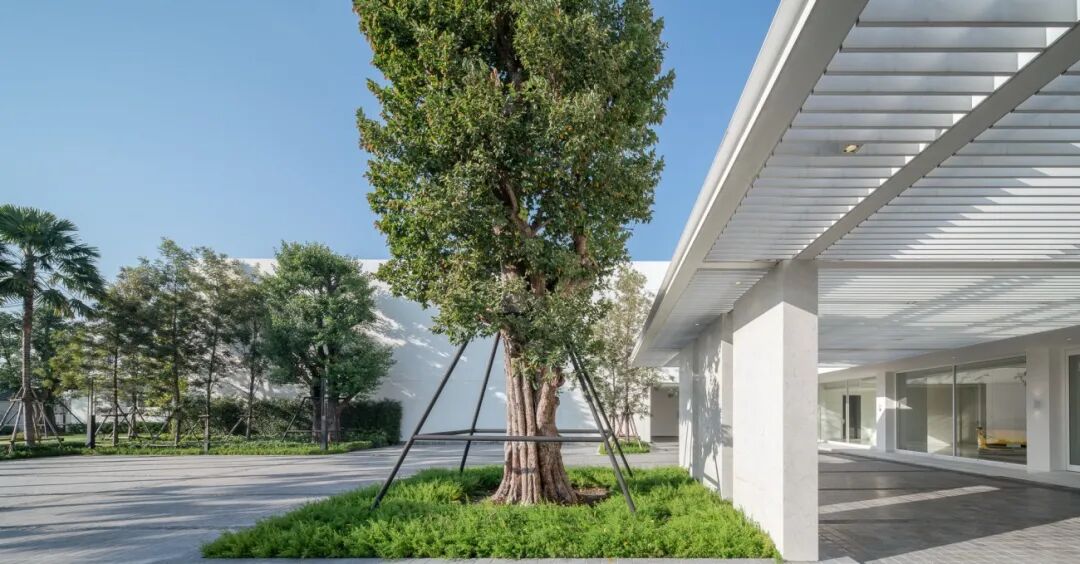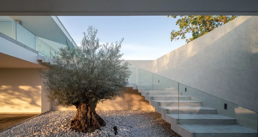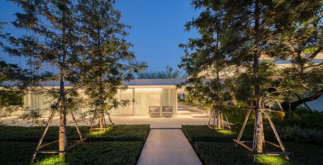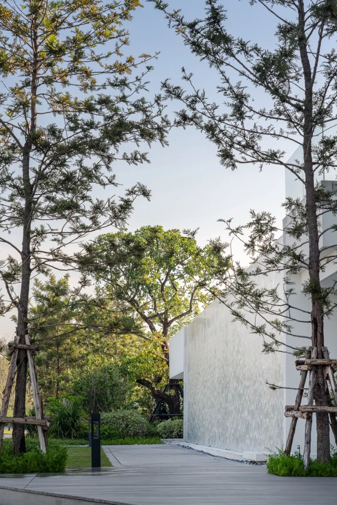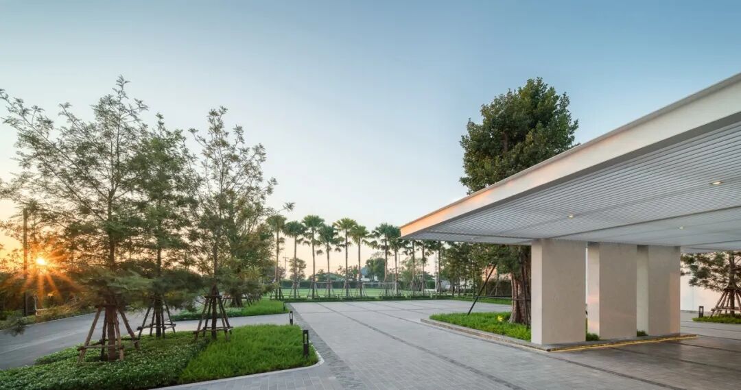 景观设计作为一幅艺术建筑的画布,通过简单的设计基本手法,如开放空间和遮阳空间的对比,不同形式、形状和纹理的树木组成,地貌和水平面变化,以及整洁度创造出宁静的本质和广阔的自然之美,巧妙地创造了视觉冲击。