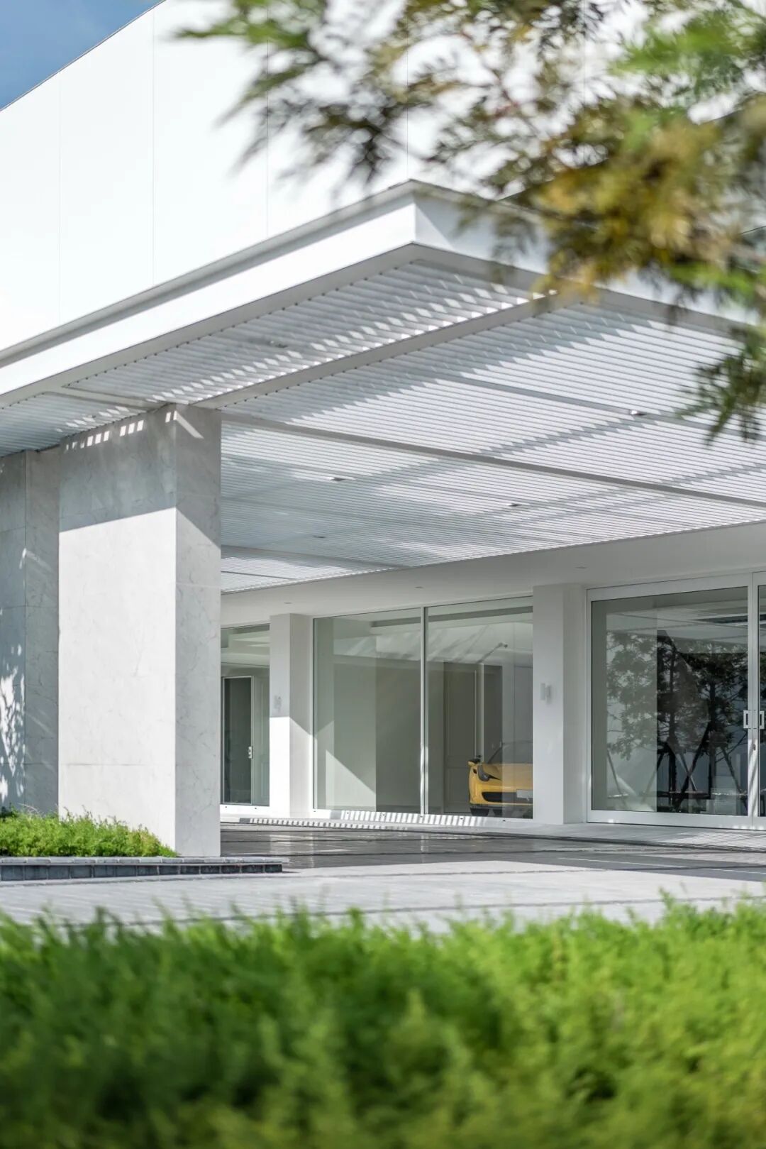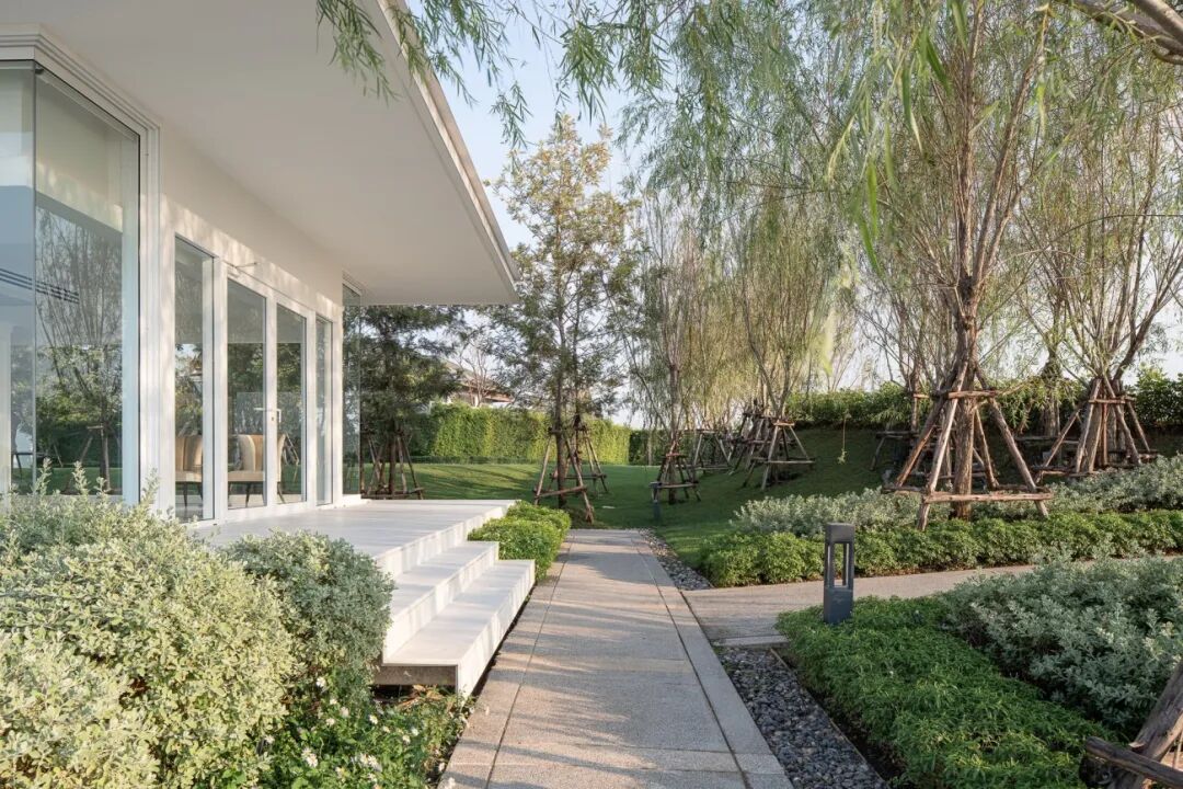景观设计的策略是将景观作为标志性建筑和原始自然的画布,此外,作为室内和室外空间之间的视觉或物理过渡,采用了现代的设计手法。