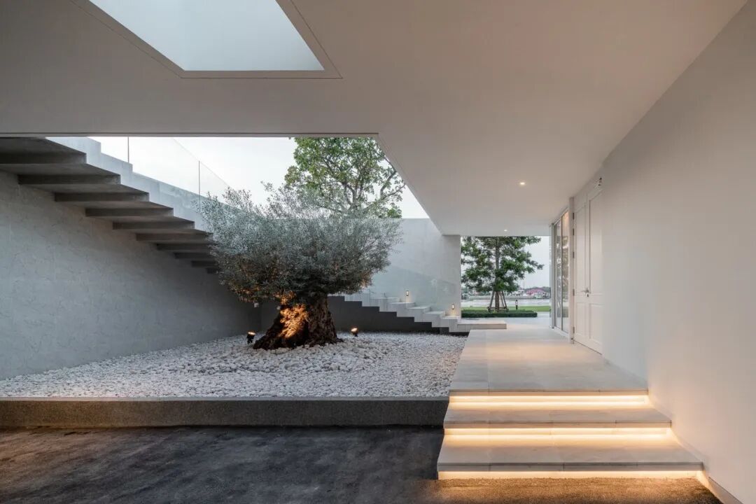河屋是为多代人居住的大家庭设计的度假别墅,位于Pathumthani省的湄南河沿岸。这家豪华的私人世外桃源拥有现代建筑、宽敞的河边花园和一系列庭院,提供无与伦比且宁静的河畔生活体验。