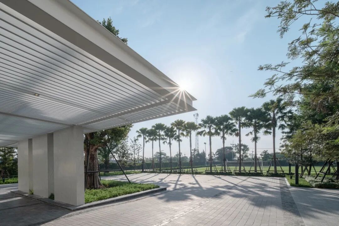 As a canvas of a state of art architecture, the landscape design subtly creates the visual impact by using simple design fundamental techniques such as the contrast between open spaces and shading spaces, the composition of trees in different forms, shapes and textures, landforms and level changes as well as the cleanliness creating the essence of serenity and the beauty of vast nature.