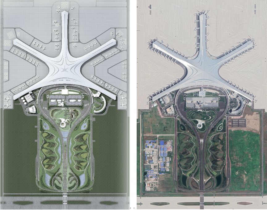 项目亮点:在整个设计方案中,景观与建筑达到了完美的融合。新机场的航站楼呈“海星”状的五指廊向心布局,实现大集中与单元式的合理平衡;航站楼前的景观设计则运用了“海浪”的大地景观设计手法,充分体现了与航站楼建筑设计的呼应,建筑与景观主次分明。景观设计不仅注入“齐国”地域文化基因,还具有前瞻性的协同设计,将结合景观地形的绿色雨水基础设施与市政管网融为一体,有效降低了航站区的内涝风险,助力青岛机场成为国内首屈一指的海绵机场。