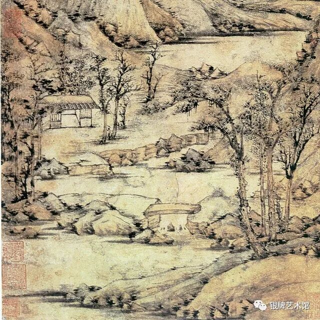 两岸地势低平,疏林空落,林下一间屋舍,人去屋空。