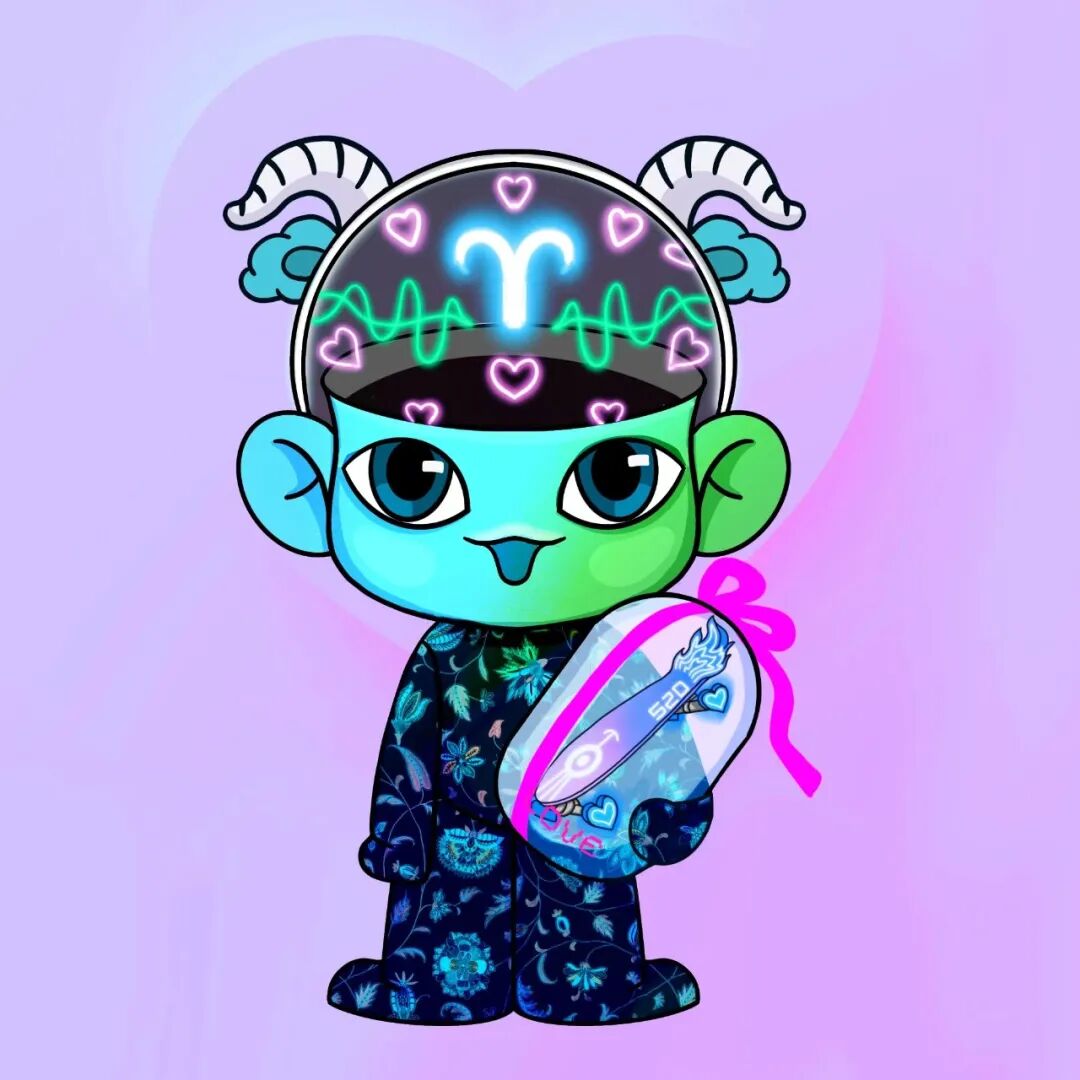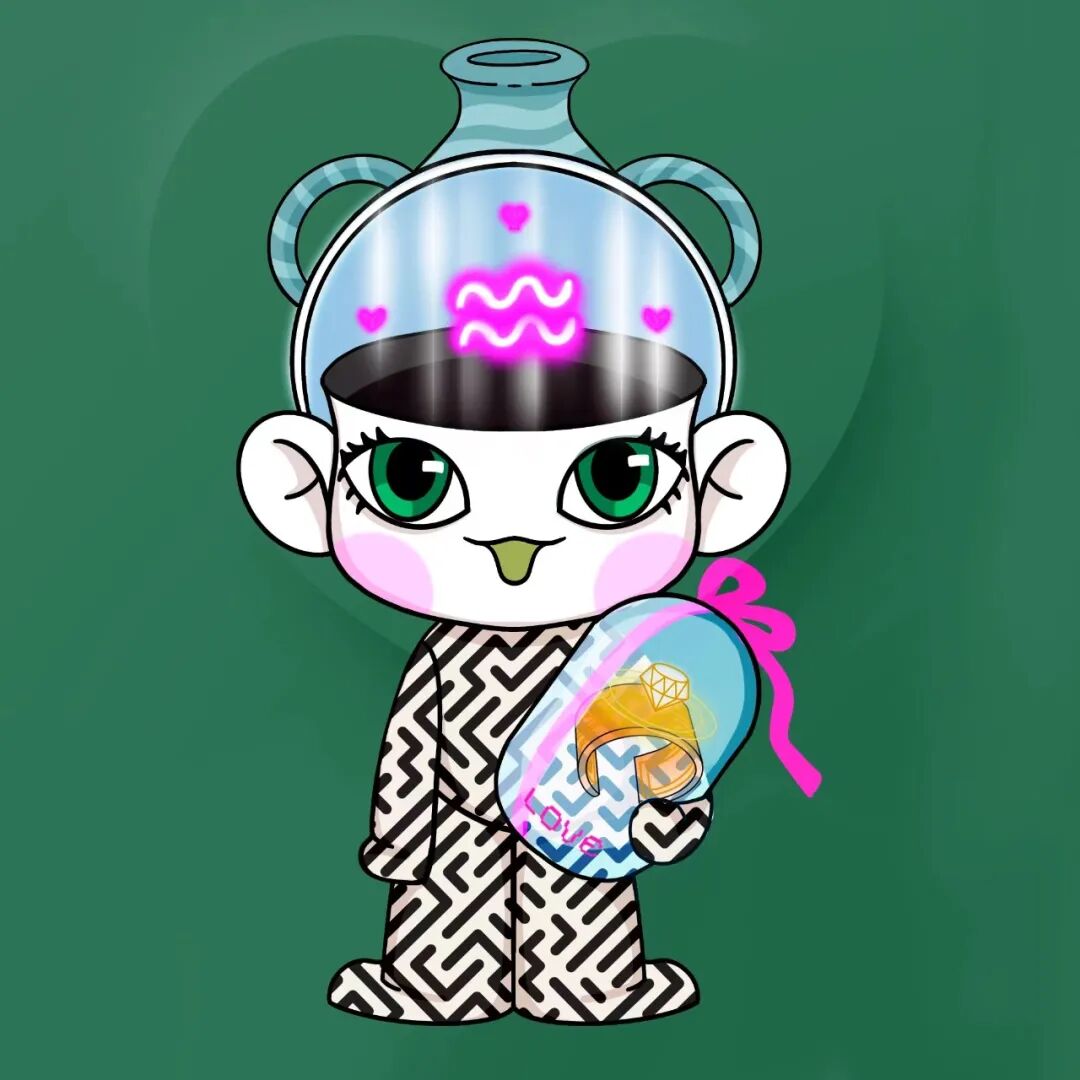 在2022年的七夕佳节之际,特意摘选艺术玩家实验室创作的『十二星座脑波潮玩』数藏系列,作为专属于『鱼猴能量球』的节日特别福利空投给了藏家朋友们。