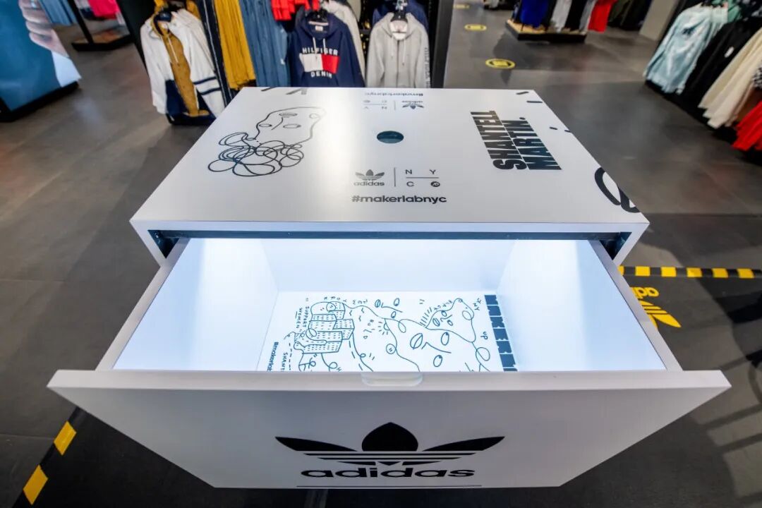 MakerLab 允许参观者创建及定制独一无二的 Superstar、NMD 等鞋款,并且所有的服装你也可以添加马丁的创作元素来自行设计。