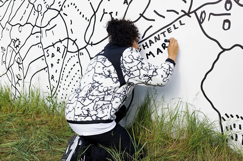 说到跨界合作尚特尔·马丁基本包揽了大部分世界知名运动品牌的产品设计。我们先来看看北面,这次设计的灵感来源马丁直接利用了北面的 Search and Rescue 系列单品,但在这个系列基础上马丁进行了重新解构,并加入了自己独特的涂鸦元素来诠释户外探险的挑战精神。