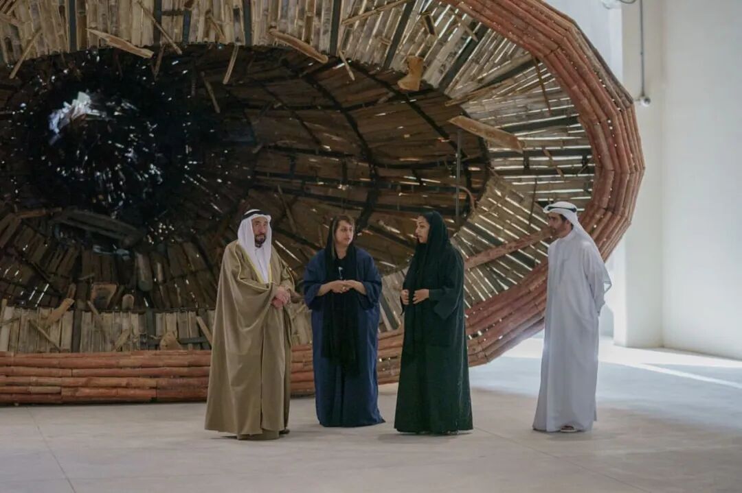 下图:第十五届沙迦双年展展览开幕现场,2023