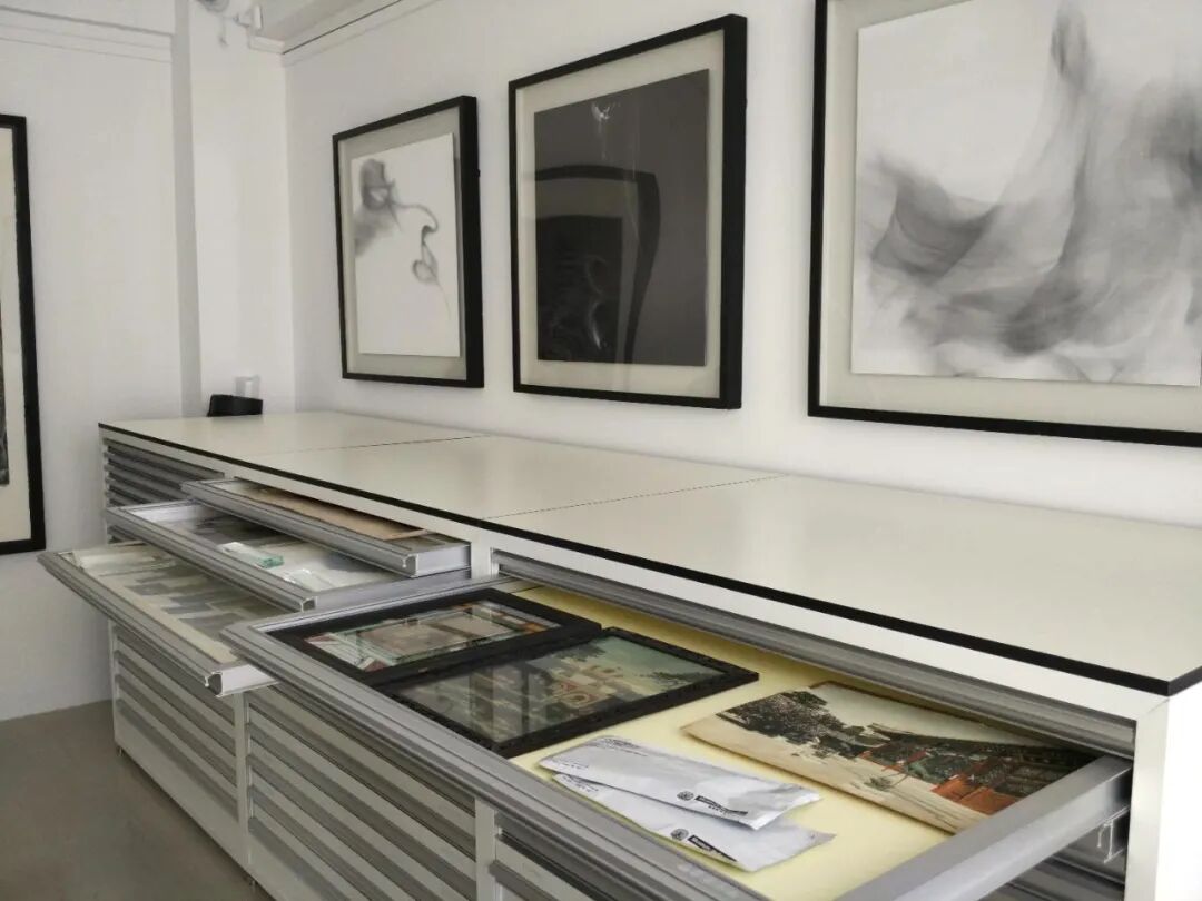 (1)超薄抽屉设计,可放置大幅作品不少于 550 张,中小作品更达到上千张。有效预防多件作品叠压给底层作品带来的伤害。储存柜抽屉有不同规格,满足不同作品形态的储存需求。
