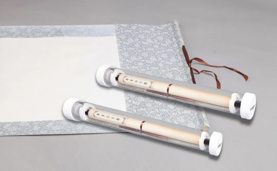 在中国,卷轴书画是收藏大类,这种保存筒是一款拥有发明专利的产品,适合卷轴作品储存或者大幅作品的外出携带,独特的结构设计,可高度隔绝外部环境对藏品的影响。设计师加入高性能的“微环境调节滤芯”,可帮助形成无氧、无水分、无有害气体的保护内环境。此外,可视化储存,方便观察与管理艺术品,符合对藏品的最小干预原则。