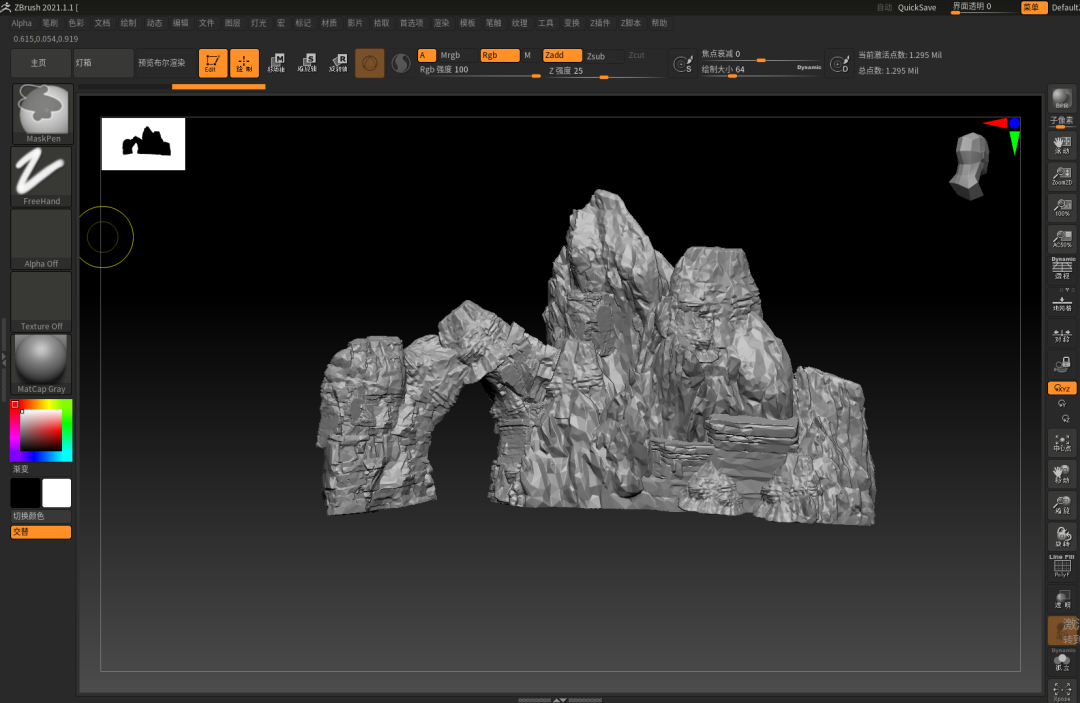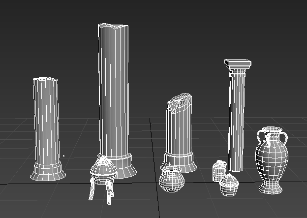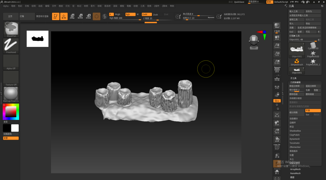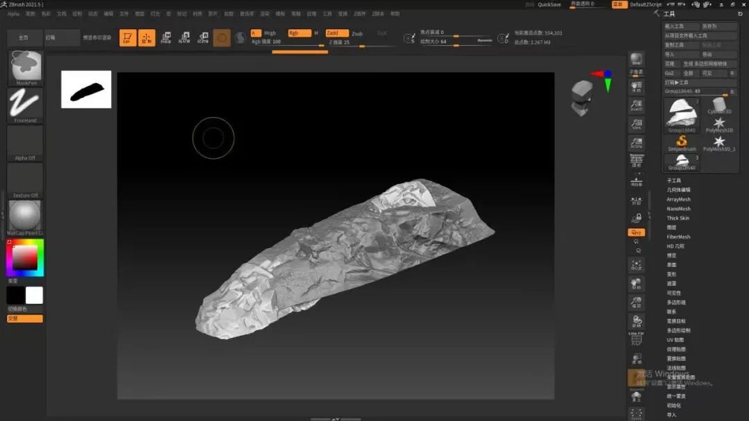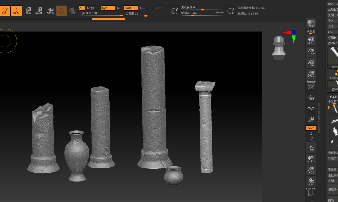 这次场景,涉及到中模的部分可能就只有石柱子,台阶,与其他的小物品了,其他的部分基本都是一个BOX或者球直接丢到ZB里面就开始雕刻了。