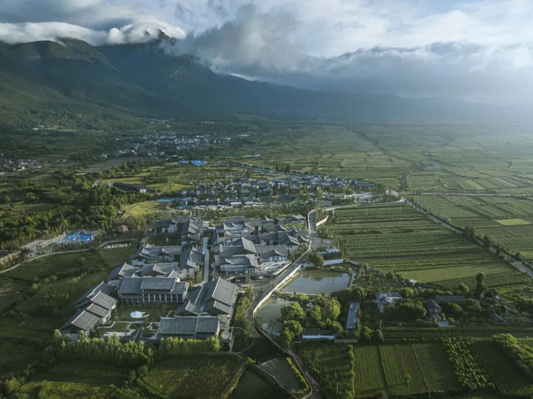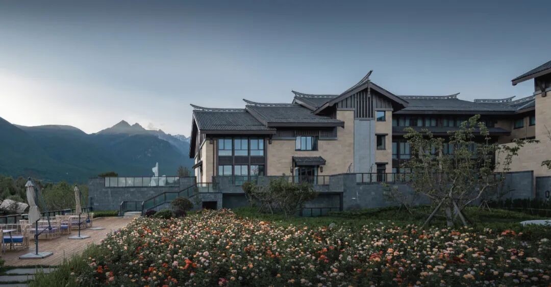 位于玉龙雪山南侧的丽江CM,则与这片瑰丽景色相依偎,让玉龙雪山成为装点每一扇窗牖的山水长卷。建筑群以其北侧及西侧的山景为主要景观资源,东西向展开的形体布局最大化延展了高景观价值界面,从而实现雪山景“无所不在”的深度渗透。