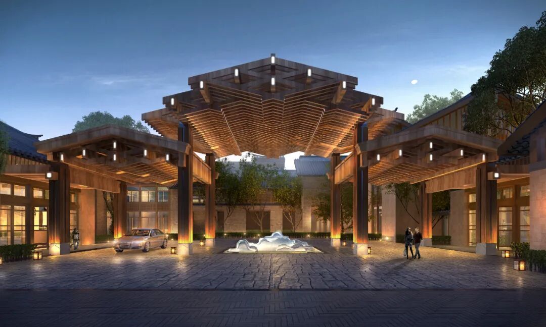 ▼主入口木构架夜景效果图