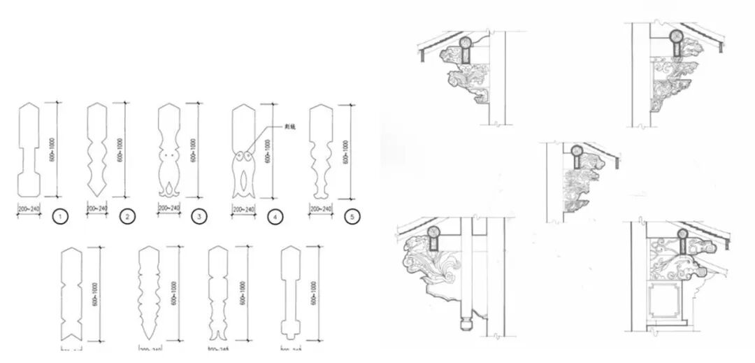 ▼传统悬鱼样式、传统檐下样式