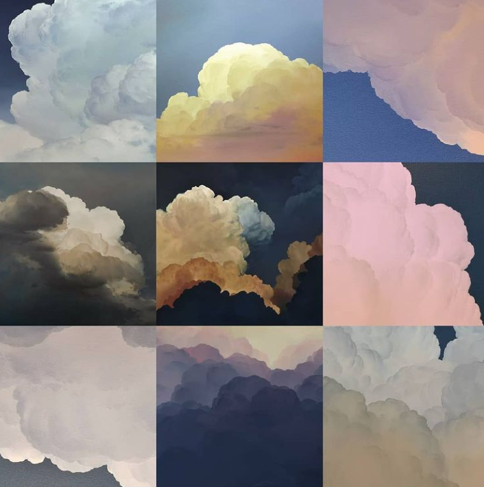 伊恩·费舍尔的云彩画作介于写实与抽象之间,他在创作开始会拿一幅照片去画个开头,剩下的全部交给自己的想象力。在他的作品中,你几乎可以看到各种各样的云,有的飘渺如烟,有的雄伟壮丽,还有的会让你感觉置身于云层之中,每一幅画作都给人带来梦幻般的感觉。