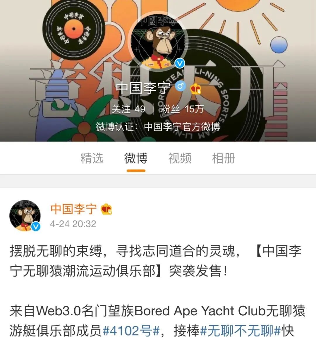 加上这次李宁和无聊猿的合作,NFT和运动品牌的玩法全面开花。