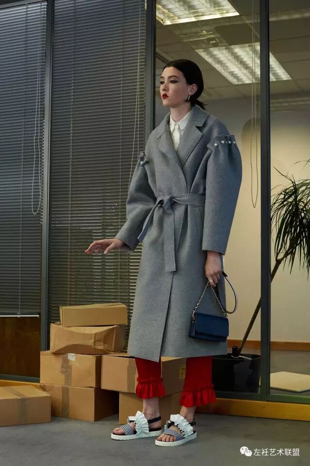 以“大都市传奇”为主题,用服装语言去演绎电影中的灵魂所在,依旧以典型的宽大廓形为主,加入了灯笼袖以及褶皱等元素。