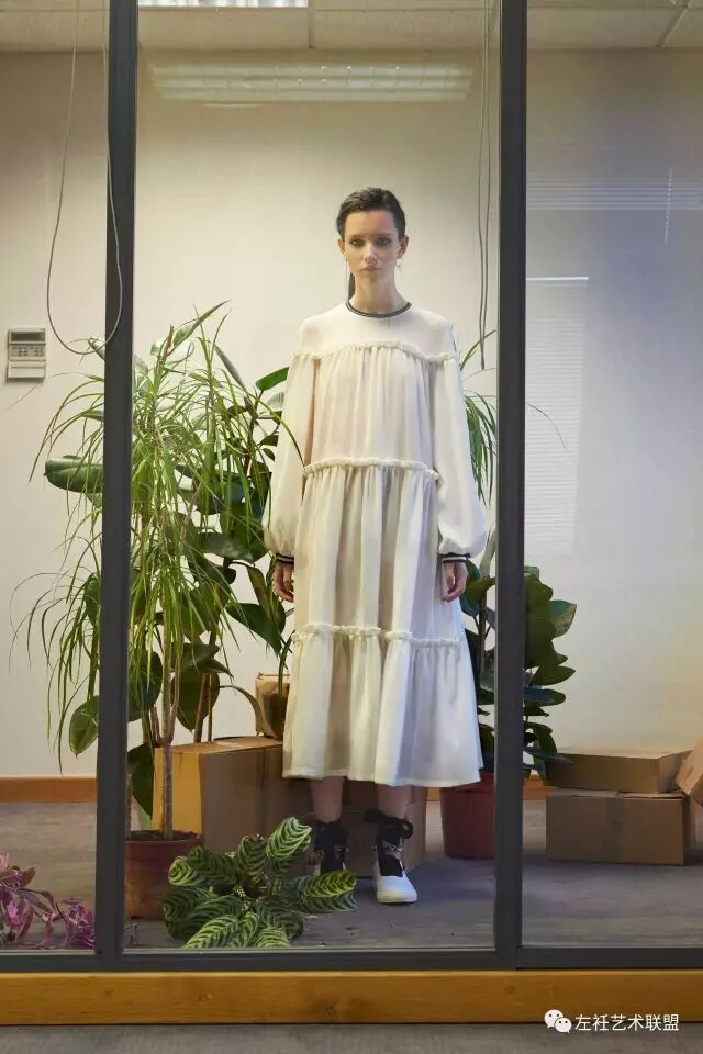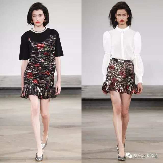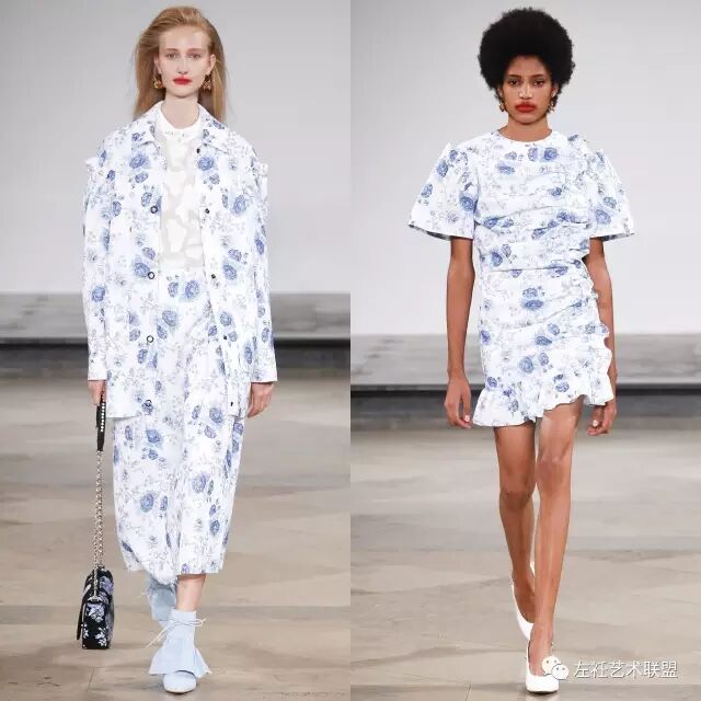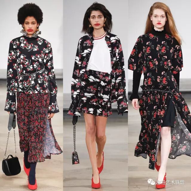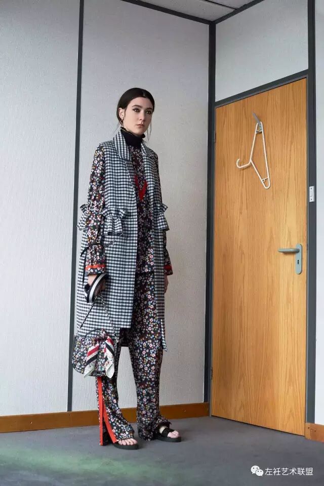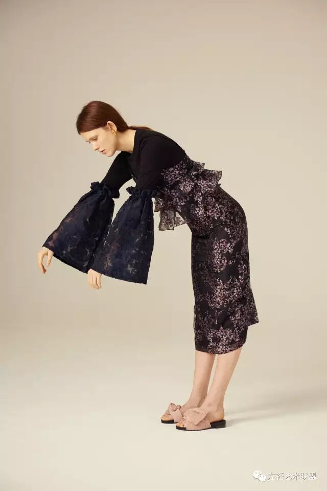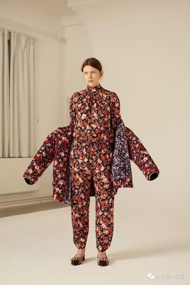 这一季灵感来源于家里的老照片,尽管是80年代但是有种70年代的气息。Amy将脑海中的画面转化到设计中,宽大的廓形,荷叶边和少女情愫的碎花加以装饰,模特以有趣味性的方式演绎,优雅而又不失活力。
