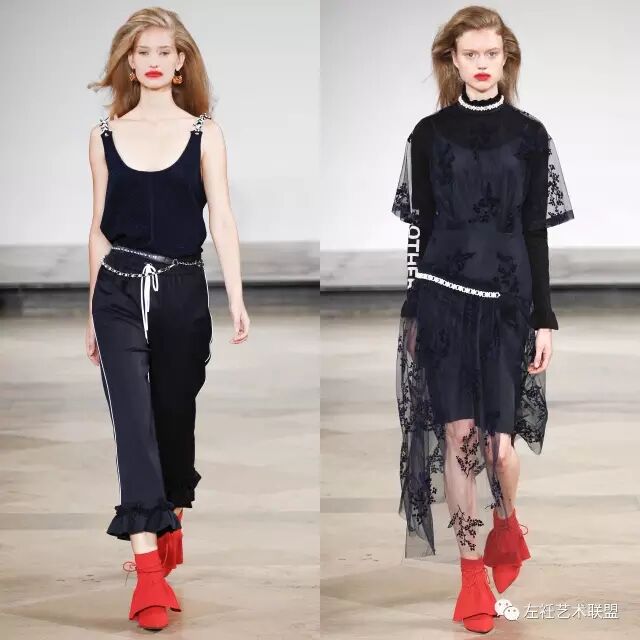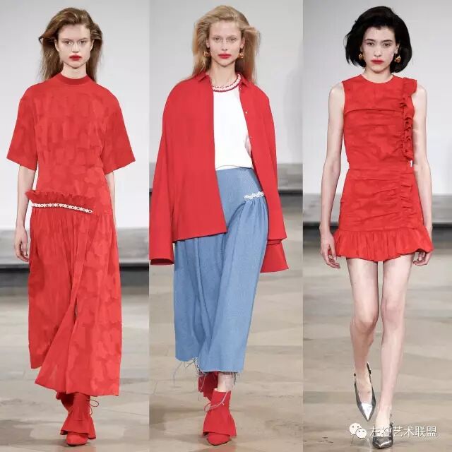 这季将运动元素与荷叶边设计融合,印花散发出的复古气息中无形中又增加了少女感,设计师似乎对立体荷叶边情有独钟,每季都有看到荷叶边于珍珠元素的延伸。无论是从细节设计还是整体造型中,都能感受到设计师满满的浪漫情怀。