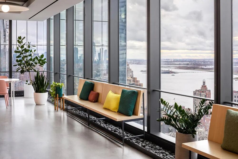 拱形门洞、柔和的配色、圆润的曲线、以及温暖轻柔的木色,所有的细节设计都旨在将该品牌俏皮梦幻的美学融入到工作场所的设计中。而其卓越的地理位置、开敞的天际线视野,带给人们犹如在云端一般的愉悦体验。