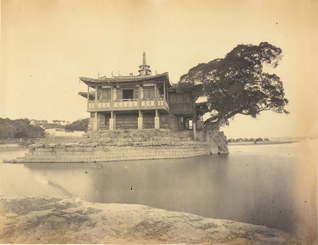 妈祖庙(妈阁庙、天后宫)是中国沿海地区祭祀航海保护神的庙宇,近代随着华人的流布四方,妈祖庙的踪迹也可在东南亚乃至海外华人聚居区见到。由于沿海地区是最早接触近代摄影的地方,妈祖庙不可避免的成为摄影的对象。这其中最著名的首推澳门妈祖阁,毕竟,“澳门”的外文名称(英文: Macao,葡文: macau)就是“妈阁”。