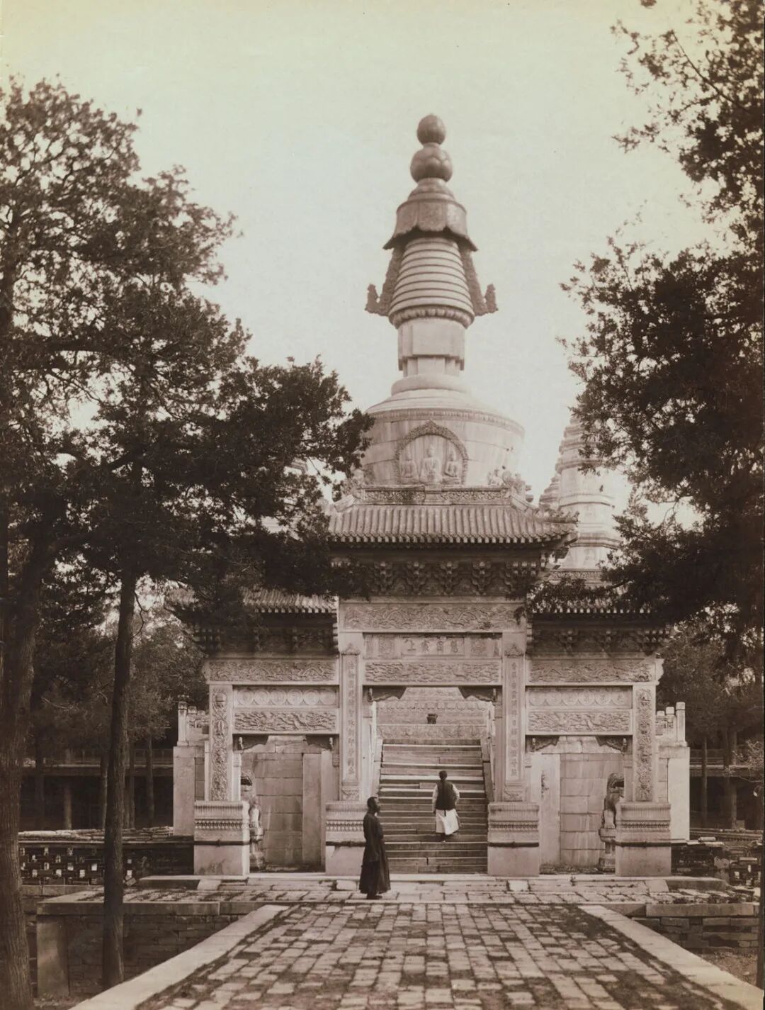 随着胶卷机的发明与在中产阶层的普及,许多真的“游客”也加入到“摄影师”的行列。因此,我们常能在民国时期的私人相册中见到各种名胜古迹的身影,这其中当然也少不了各类寺庙。中国的寺庙本身就大量作为名胜存在,这也是它们能被摄影记录的原因。这些游客对寺庙的认知也高不出多少,而摄影手法又更显业余。