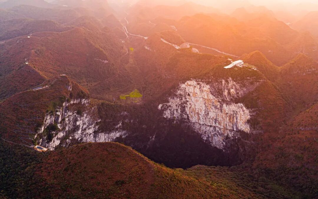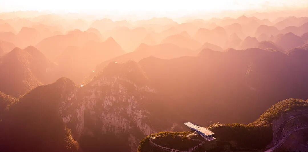 云海天舟的设计在自然景观保护与利用的两难之间,从设计理念与技术的角度给出了一种解答。技术的应用不单是为了实现悬挑尺寸的数字指标,应对设计目标技术的内在碰撞与设计理念的契合,自然形成了设计的最优解。让更多的人能够体验到喀斯特地形天坑带来的震撼性体验。建筑以一种高调的姿态谨慎的应对脆弱的地质条件,强烈的视觉形象背后则是谨慎分析之后的理性回应。山谷间实现 34 米悬挑是建筑结构的一次大胆尝试,放眼整个天坑群,云海天舟仅仅是山间渺小的一叶小舟。