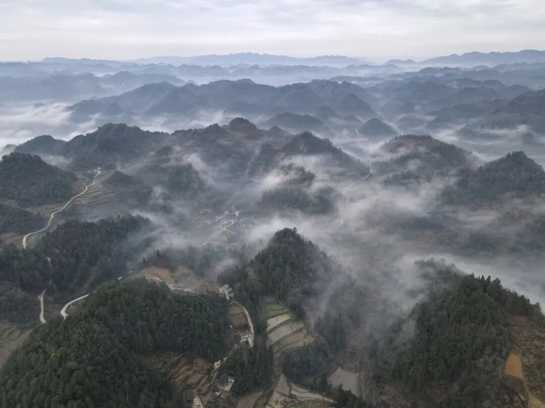 贵州高原山头若隐若现,如梦如幻,呈现出一幅壮美的云海景观。