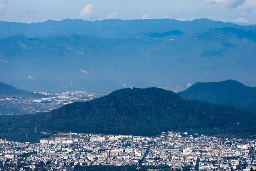 腾冲年纪最大的来凤山,它形成于 90 多万年前的火山喷发,现在的腾冲市区就建在它喷出的熔岩形成的火山沉积物上。