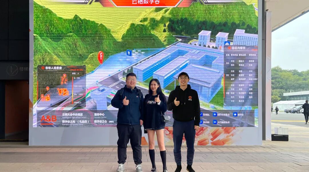 云栖数字谷是基于GIS数据信息进行搭建的,确保了导览系统功能的准确性。我们在数字谷中添加了丰富的元素,来展现数字新世界的科技氛围。这部分内容被完整的应用在了线下会场热力大屏中。