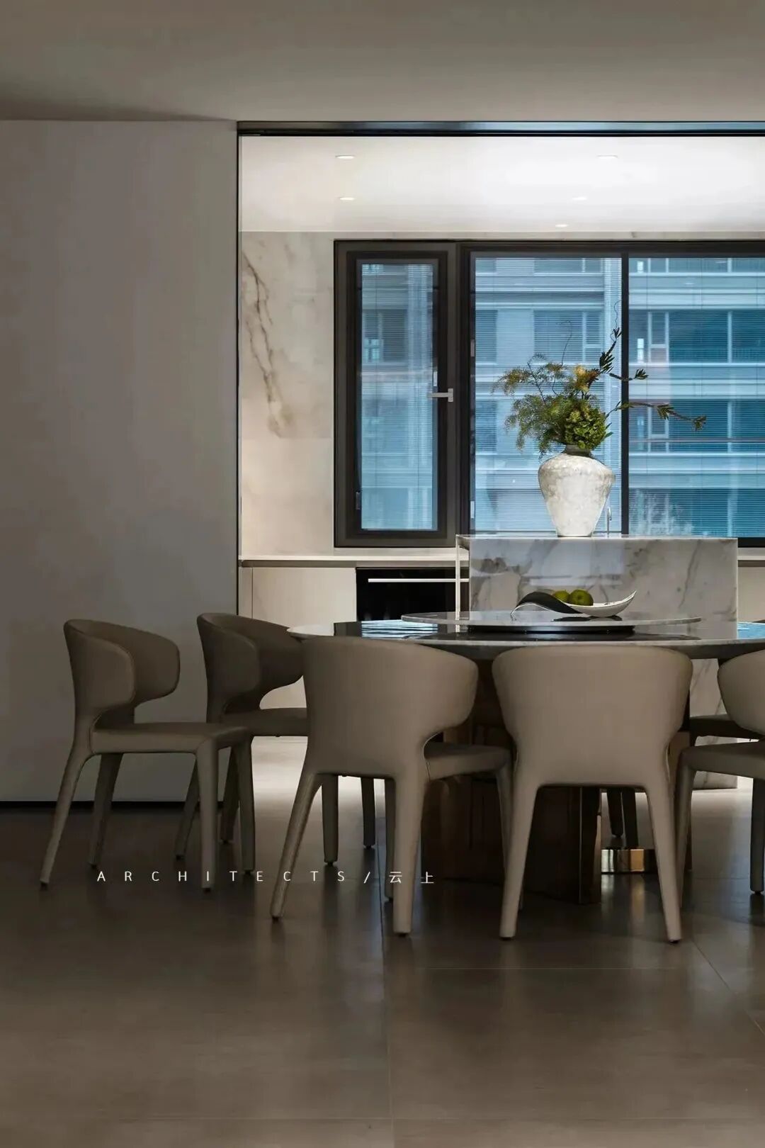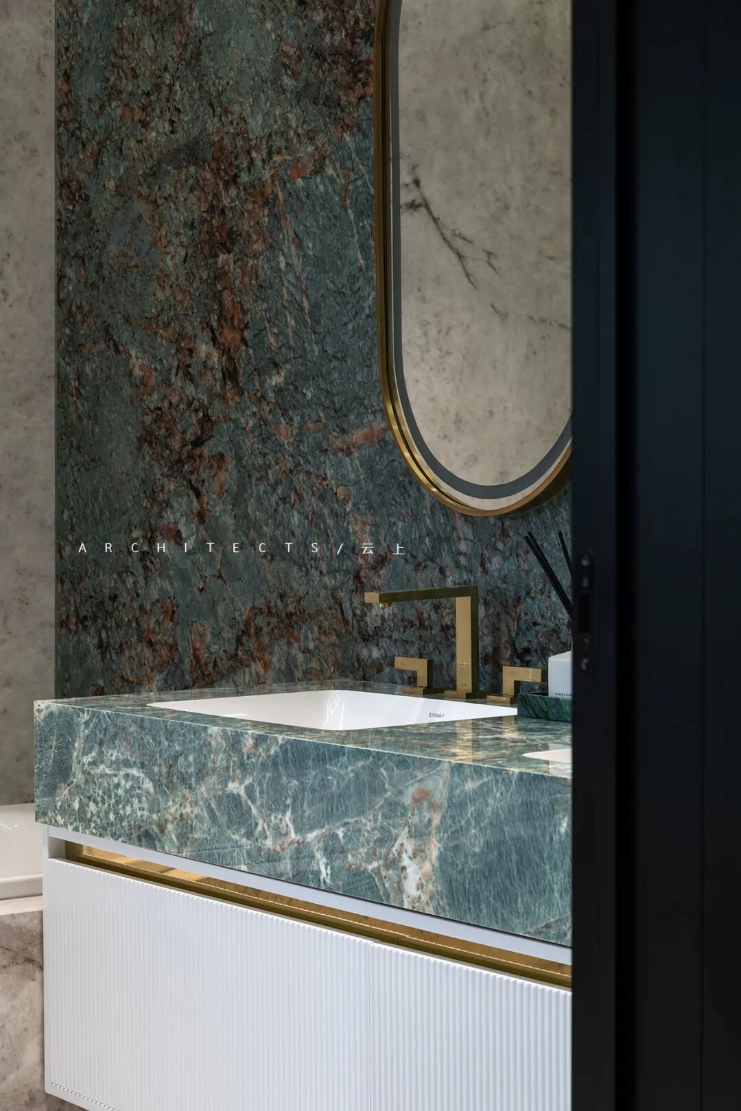 大理石、木饰面、金属质感、艺术漆等不同材质的填充,赋予空间动态多元,