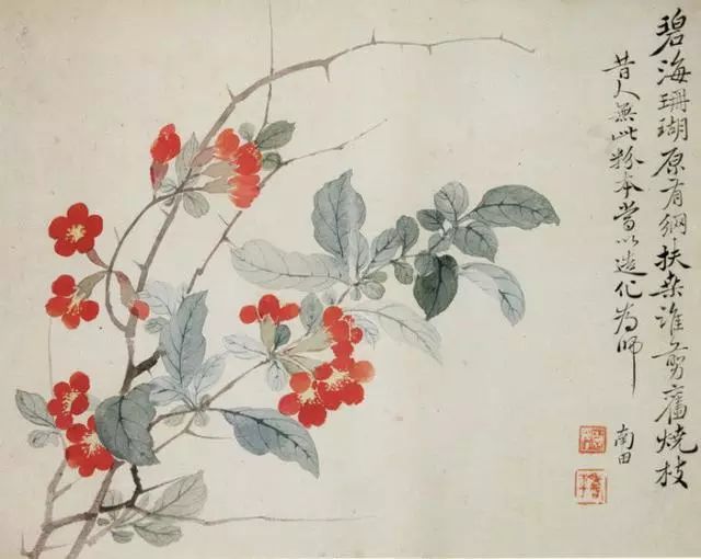 恽南田的花鸟画以似求不似,画风清新雅丽,其没骨画法风靡一时,追随者众多。他自称“徐家传吾法”,他在继承了徐崇嗣的没骨花卉画法的基础上,又揉合了黄筌、徐崇嗣两家的精髓,重视形象写生,“以花传神”。他的画法是一种“点花粉笔点脂,点后复以染笔足之”的体貌,方薰认为这是“前人未传此法,是其独造”的新风貌,它融工笔与写意之精华为一体,既有工笔画形态逼真,更具写意画的传神。