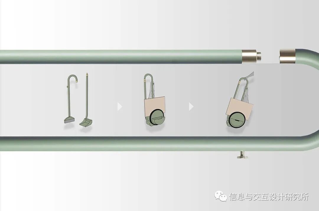 Brolley 整合为一个产品,由六个元素组成:扫帚、簸箕、垃圾箱、存储区、盒子架和挂钩。Brolley 采用模块化设计,可根据每个用户的需要逐个拆卸。