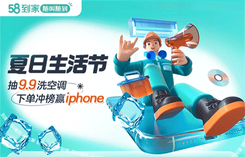 第一阶段预热期:主推空调清洗服务,主角是热爱音乐的清洗工,他坐在奖品手机上,歌唱对生活的热爱;